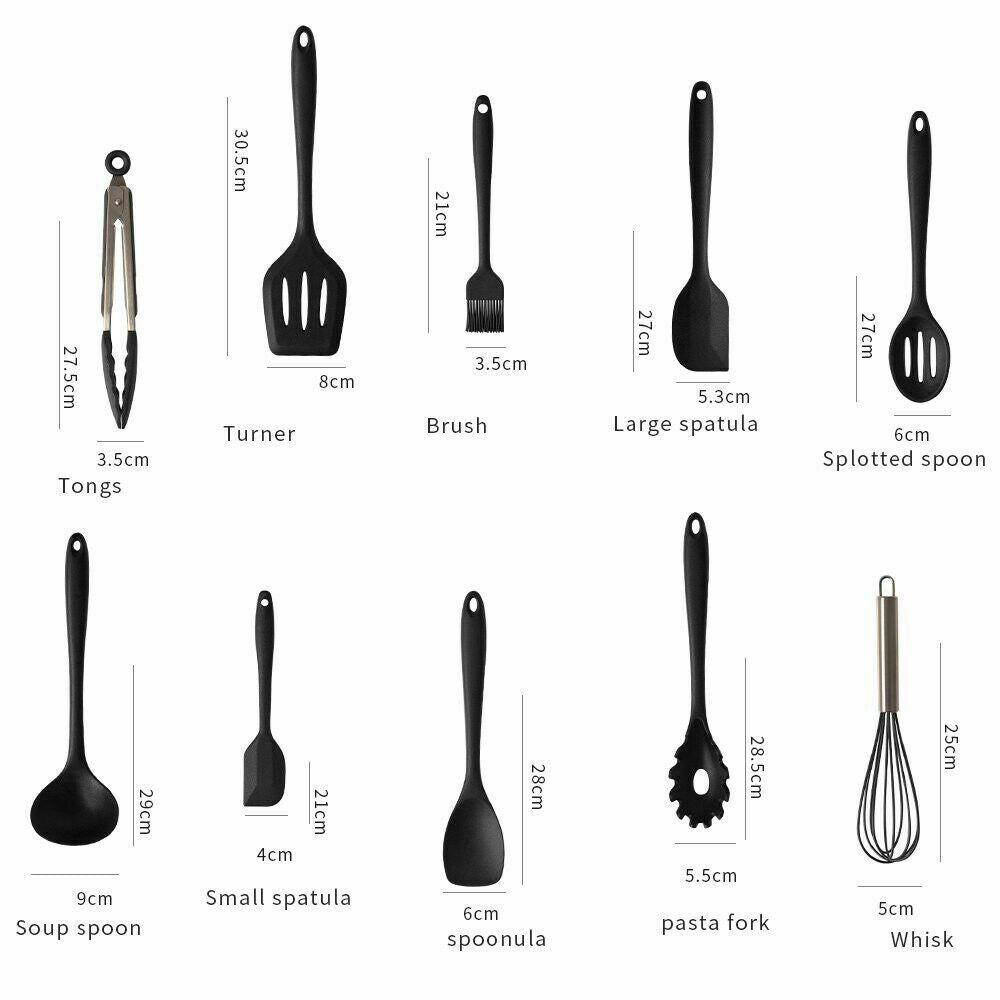 10Pcs Kitchen Silicone Cooking Utensils Set Non-stick Spatula Turner Black UK