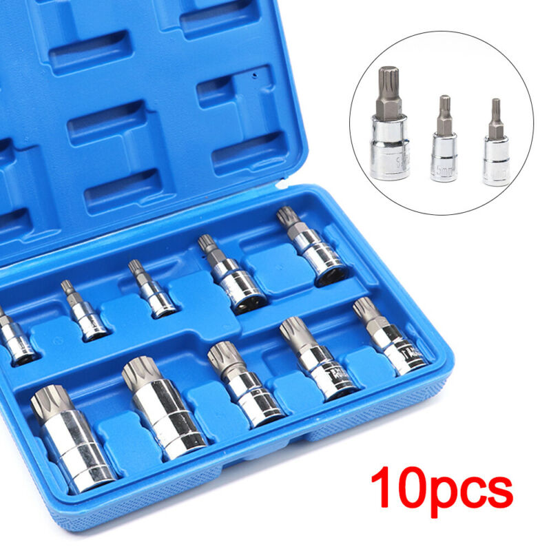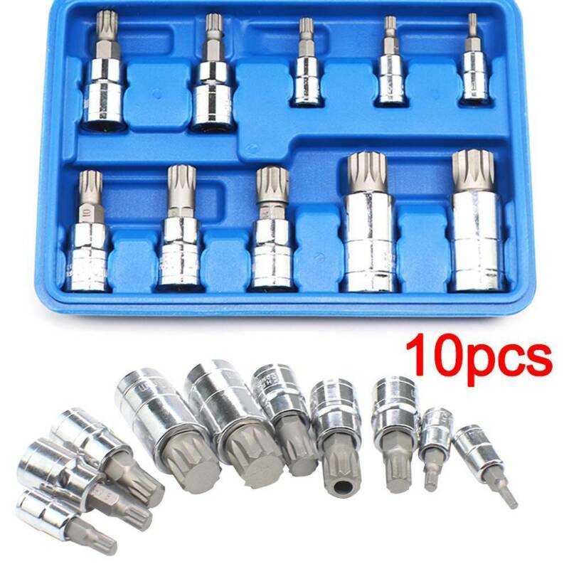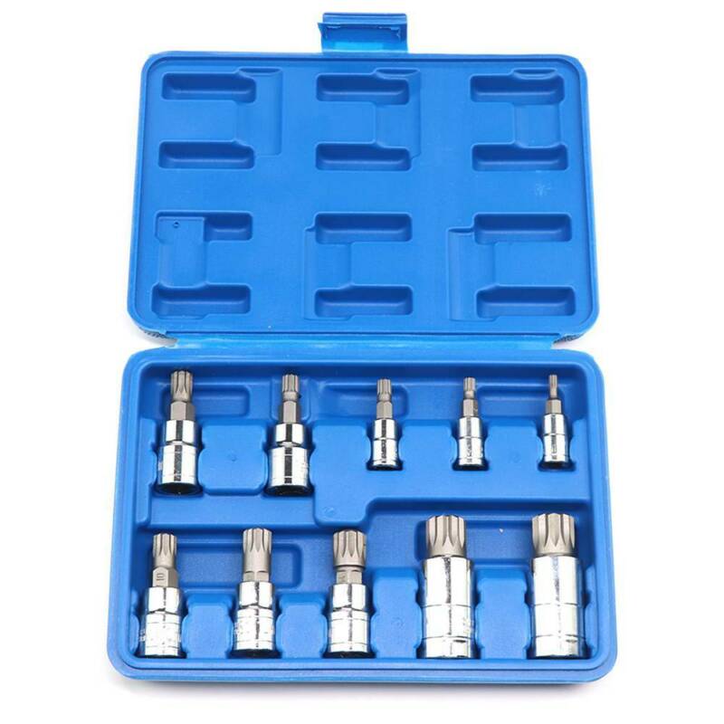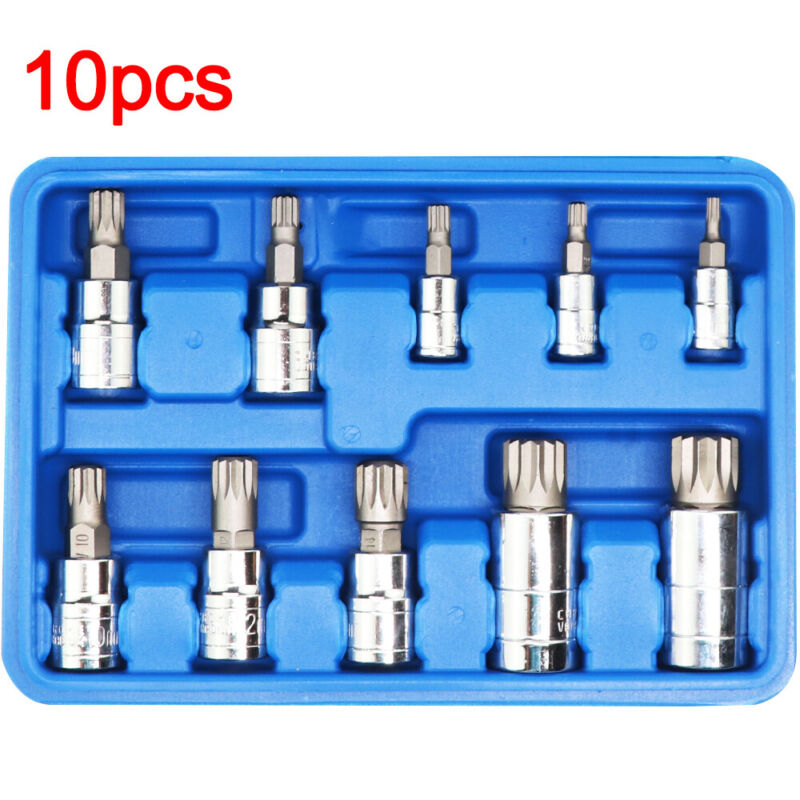 10PCS Multi Triple Square Spline Bit Socket Set Mechanics Tool 1/4" 3/8" 1/2" UK