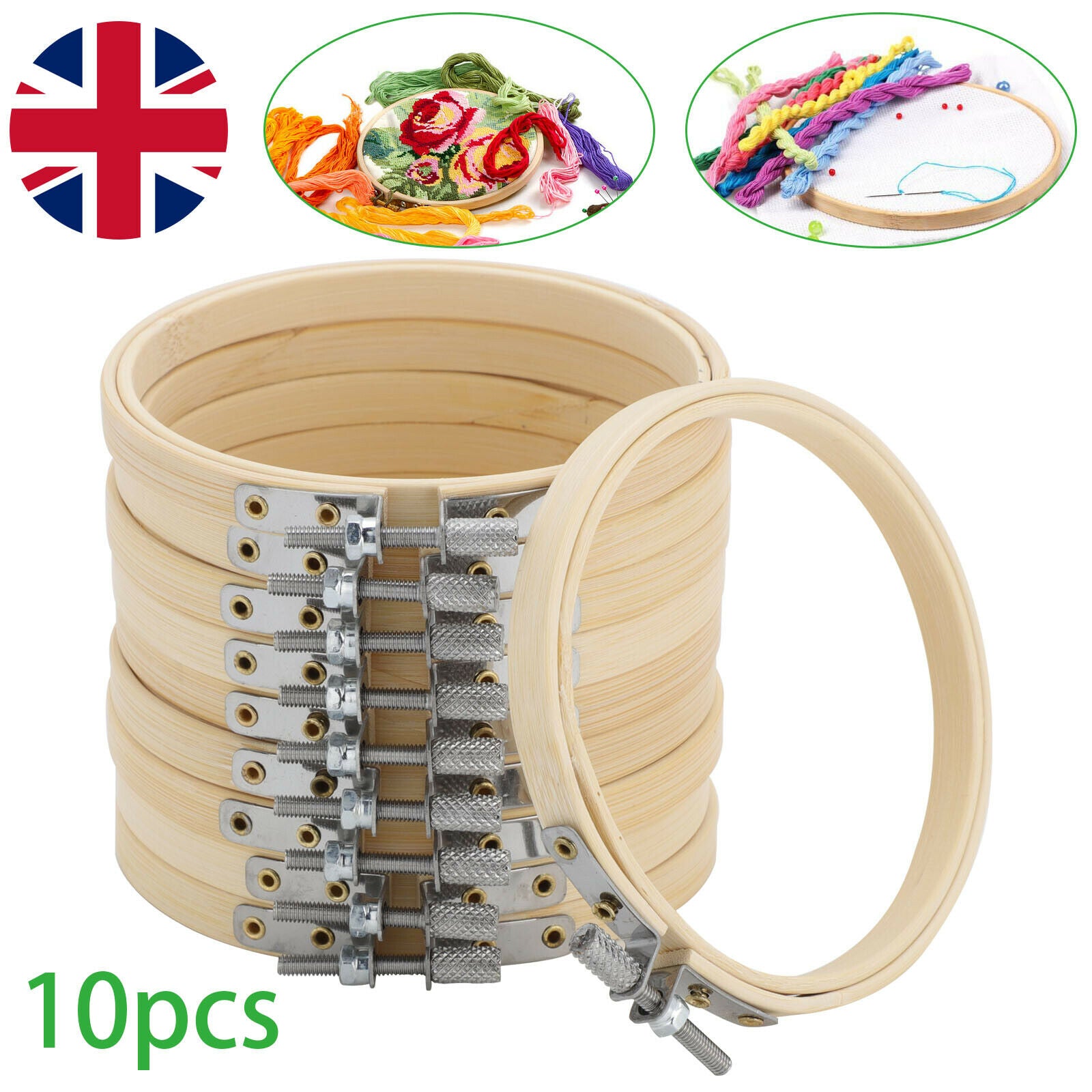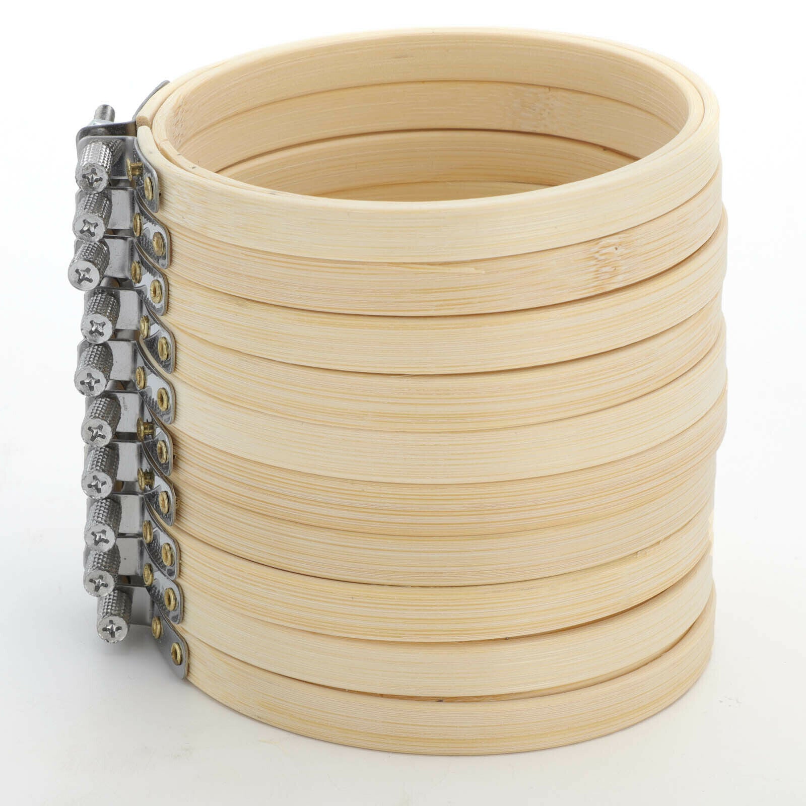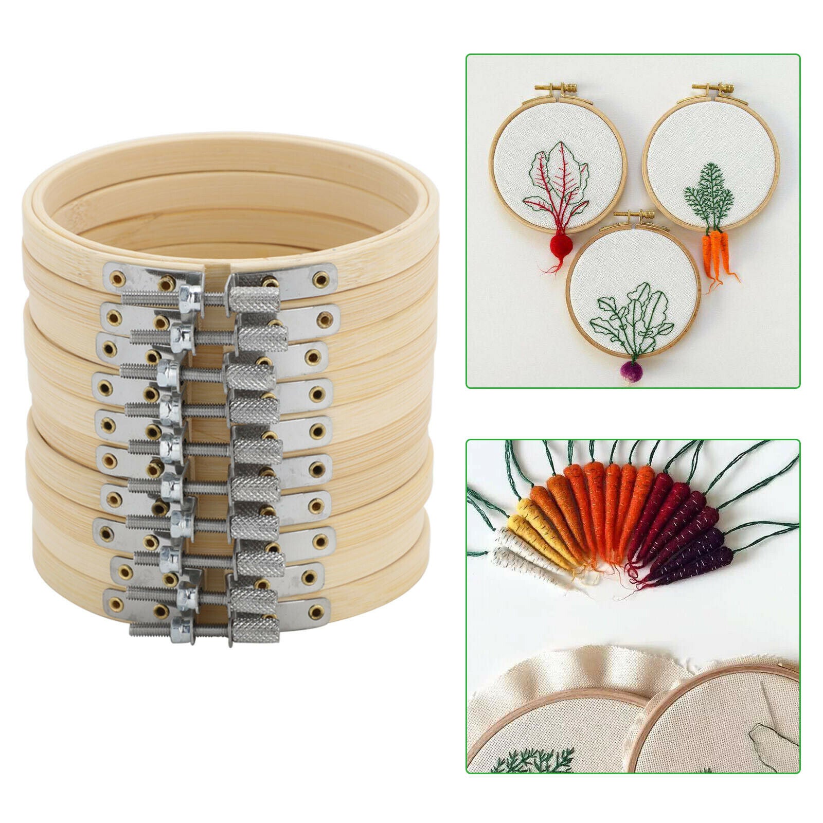 10PCS Wooden Embroidery Hoops Set Bamboo Circle Cross Hoop Stitch Tools 4In/3In