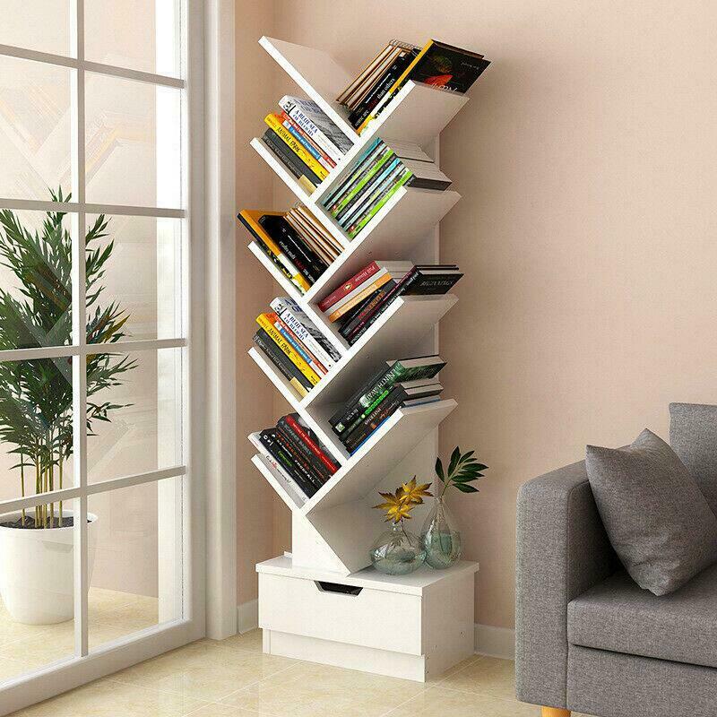 10Tier Book Shelf Tree Shape Bookshelf Case Storage Display Rack 2 Colors UK