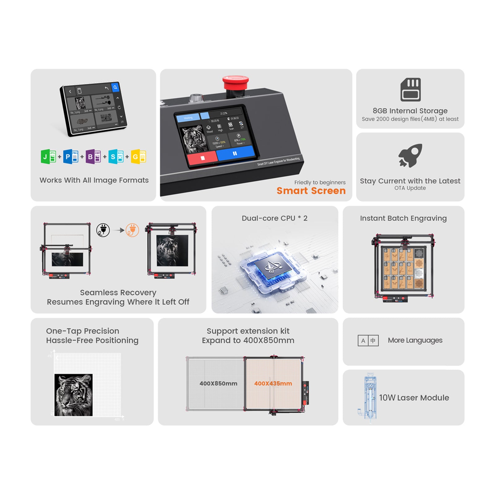 10W Output Laser Engraver Cutter for Wood Metal 400*435mm Touch Screen 3.5'' New
