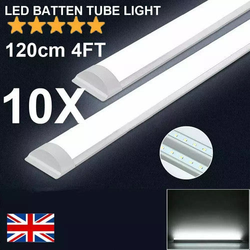 10X 120cm LED Strip Lights Batten Tube Light Office Shop Garage Ceiling Lamp 4FT