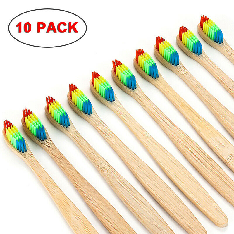 10X Bamboo Rainbow Toothbrush Medium/Firm Bristle Wooden Handle Individual Packi
