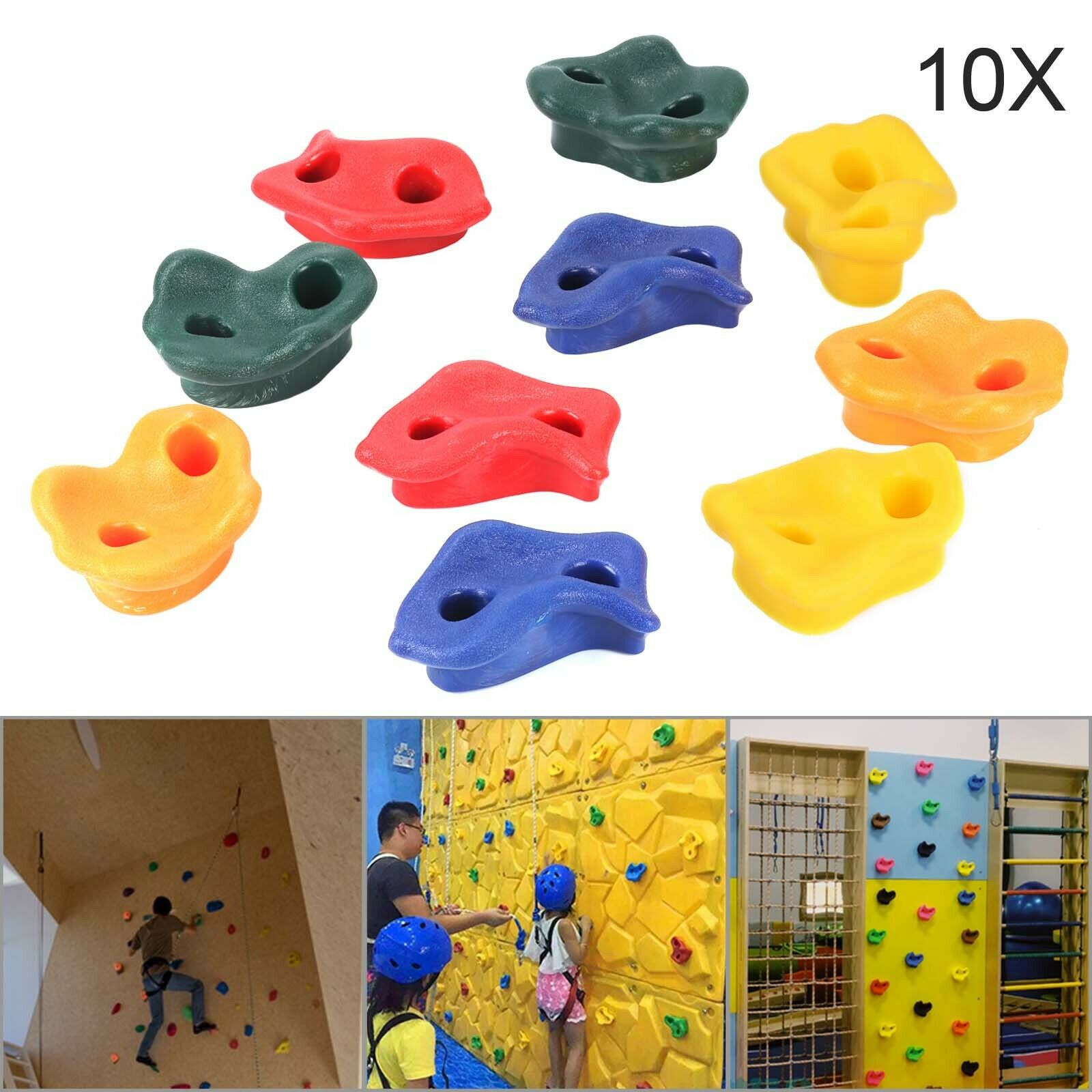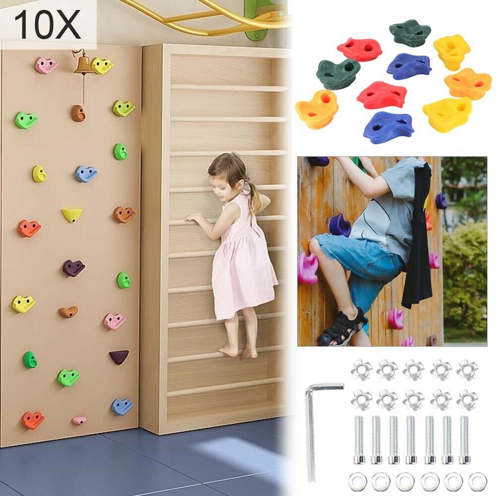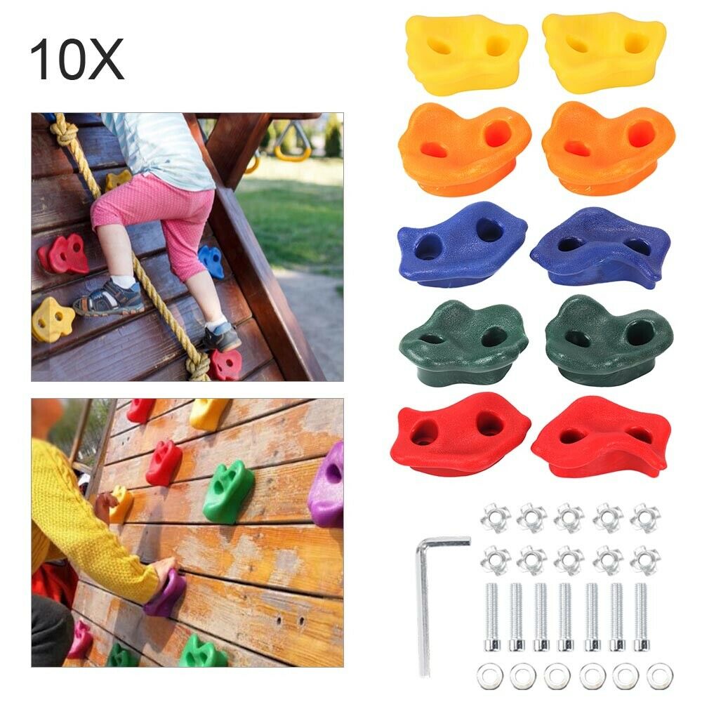 10X Rock Climbing Holds Wall Stones In/Outdoor Kids Playground With Fixing Set