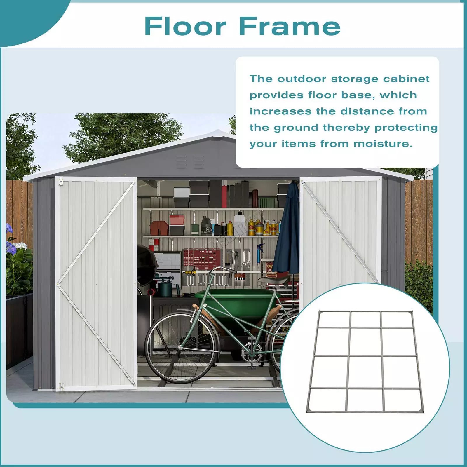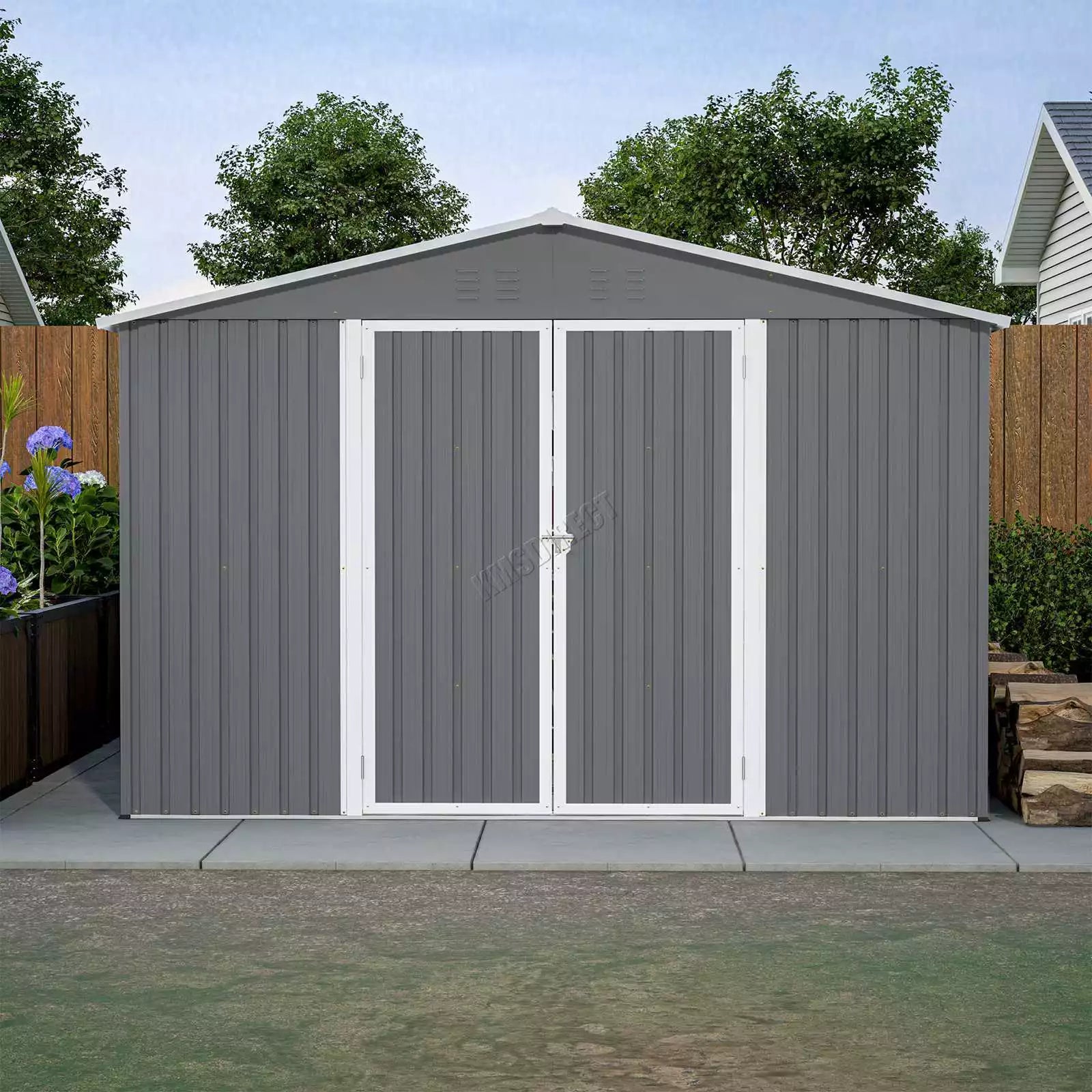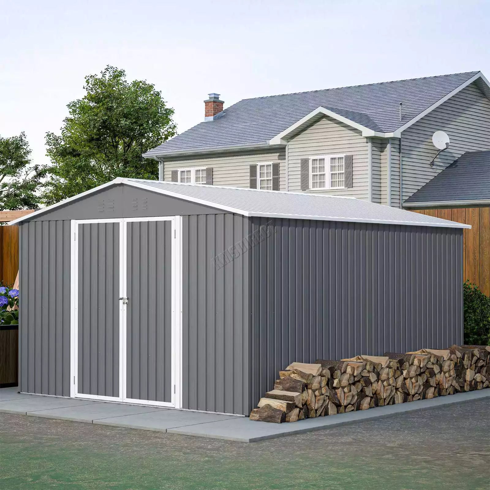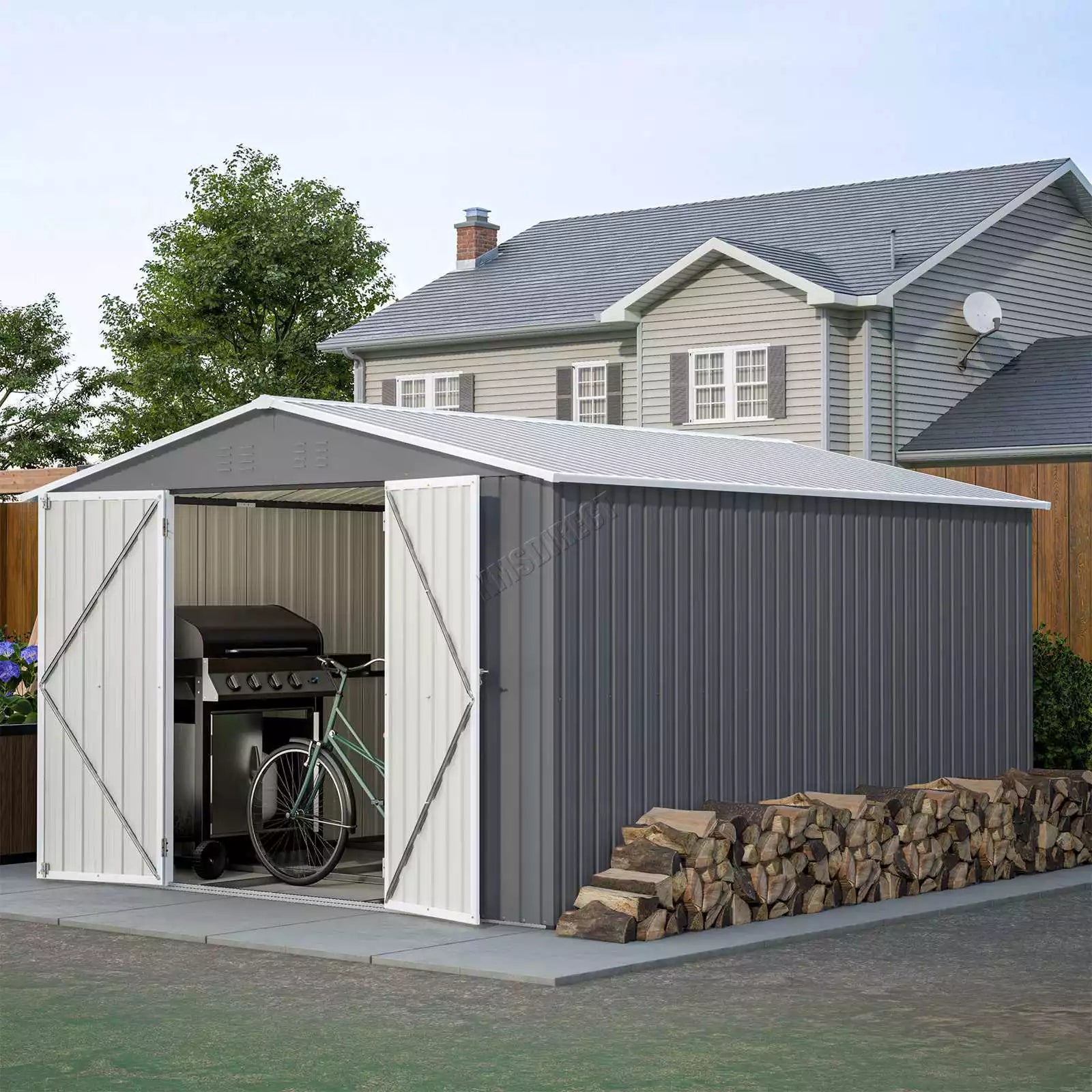 10X12FT Metal Garden Shed Apex Roof With Free Foundation Base Storage House Grey
