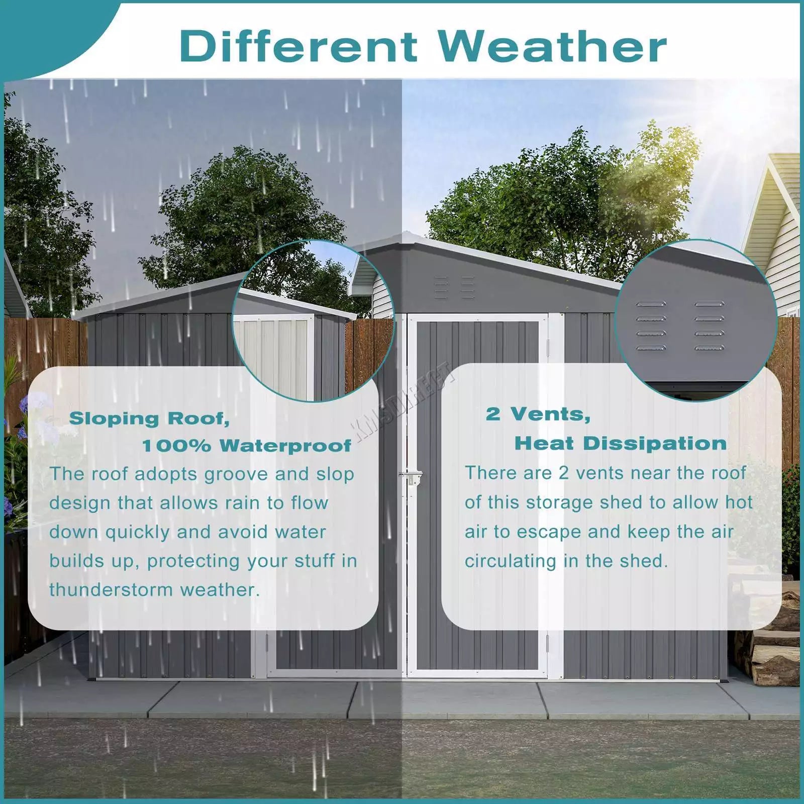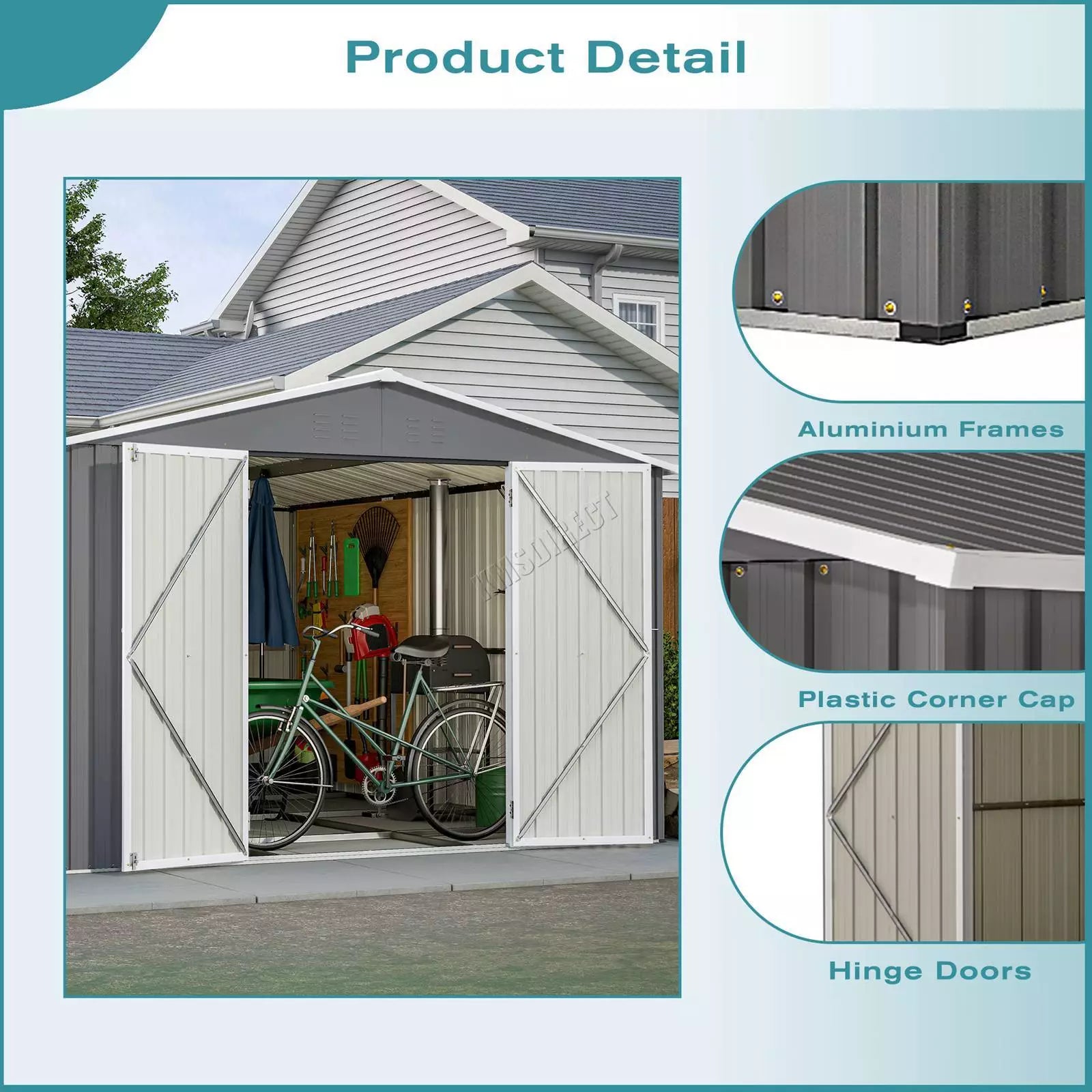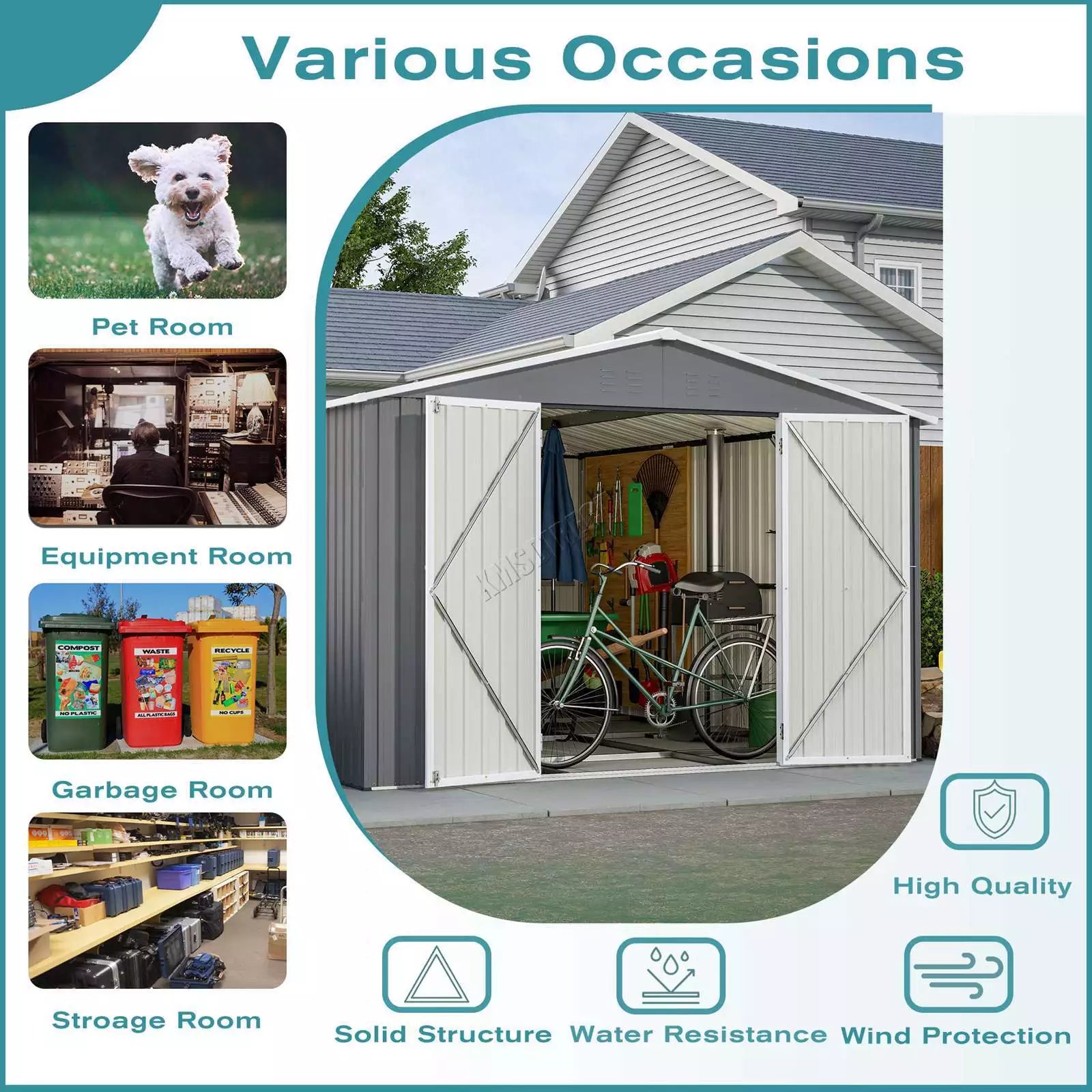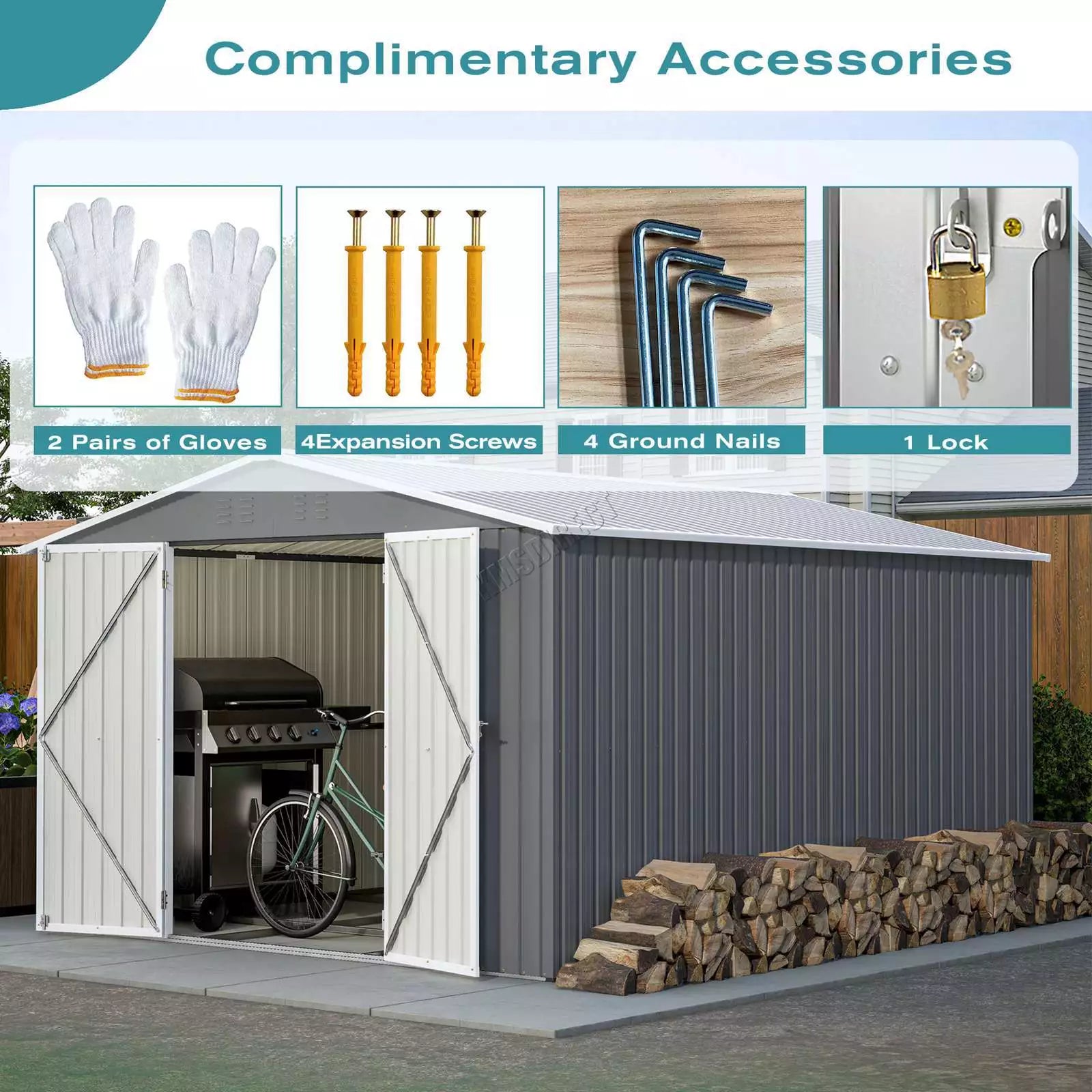 10X12FT Metal Garden Shed Apex Roof With Free Foundation Base Storage House Grey