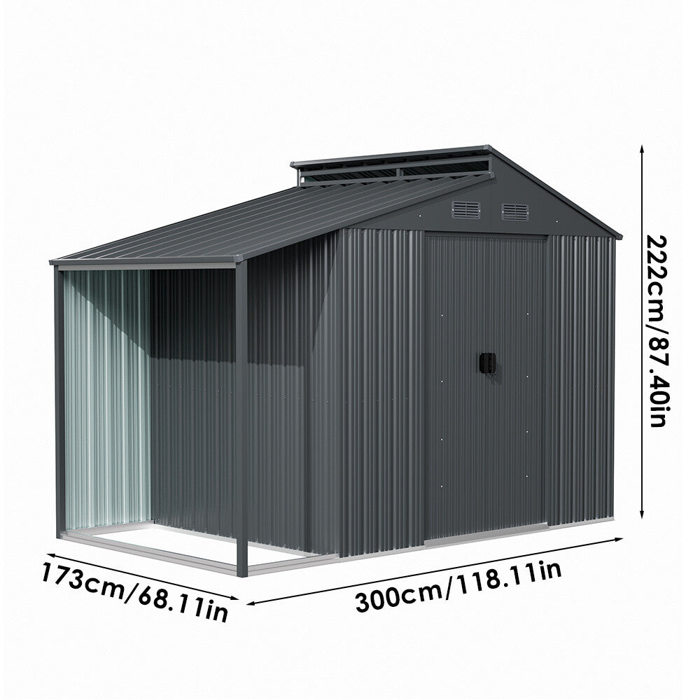10x6FT Outdoor Garden Metal Storage Shed House w/Open Sheds for Tools Bike