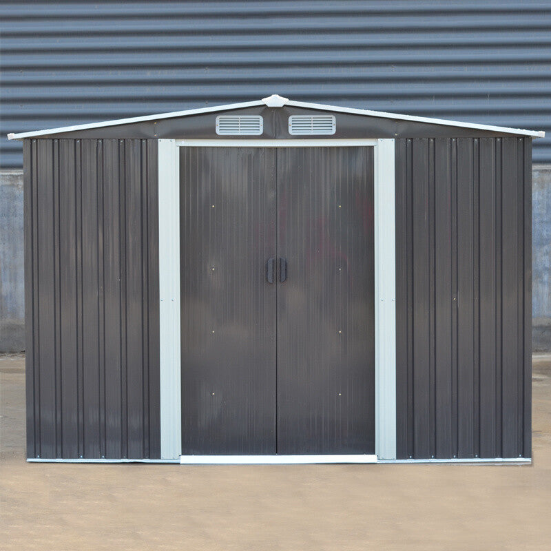 10X8FT Metal Steel Garden Shed Apex Roof W/ Free Base Storage House Ventilation