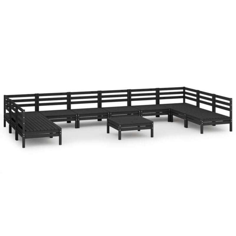 11 Piece Garden Set Black Solid Pinewood Z0R3