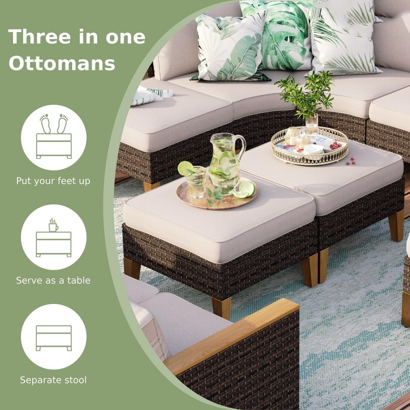 11 Piece Patio Conversation Sofa Set Wicker Outdoor Furniture Set with Cushioned