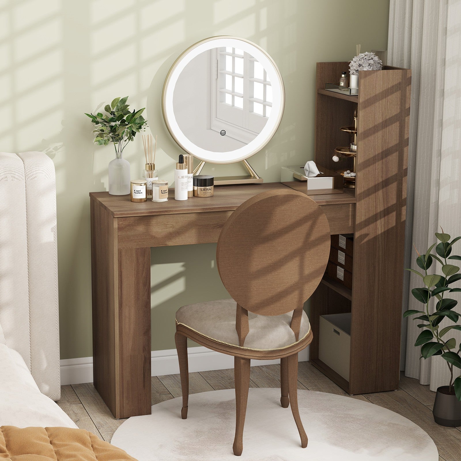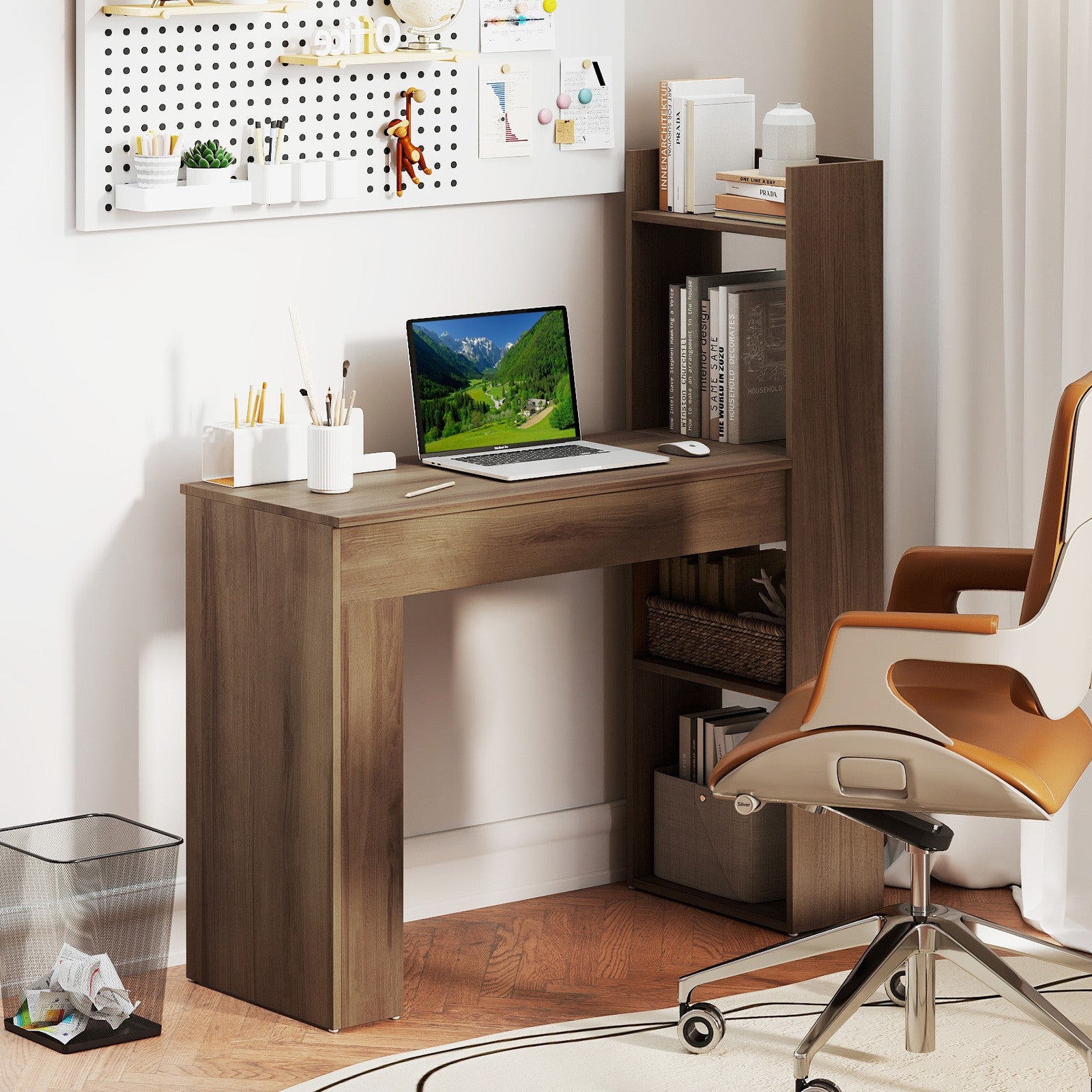 110 CM Study Writing Table with Side 4-Tier Storage Shelves-Oak