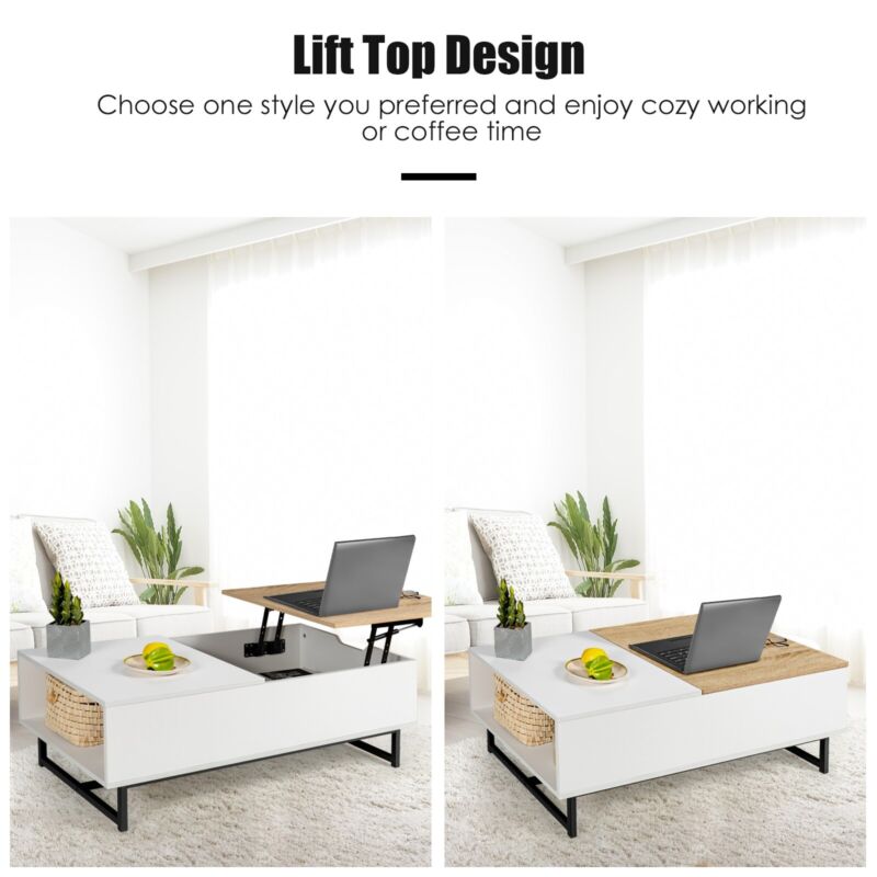 110cm Lift Top Coffee Table Modern Wooden Lift Top Dining Table Hidden Storage