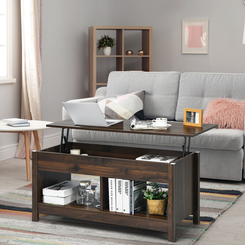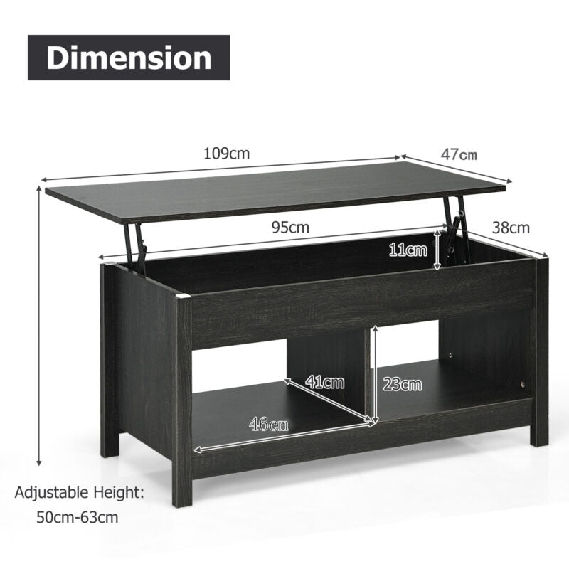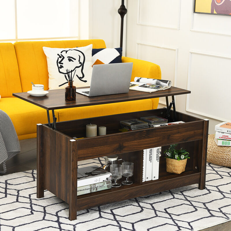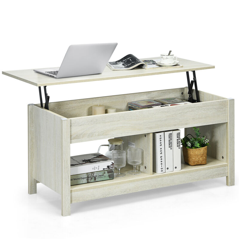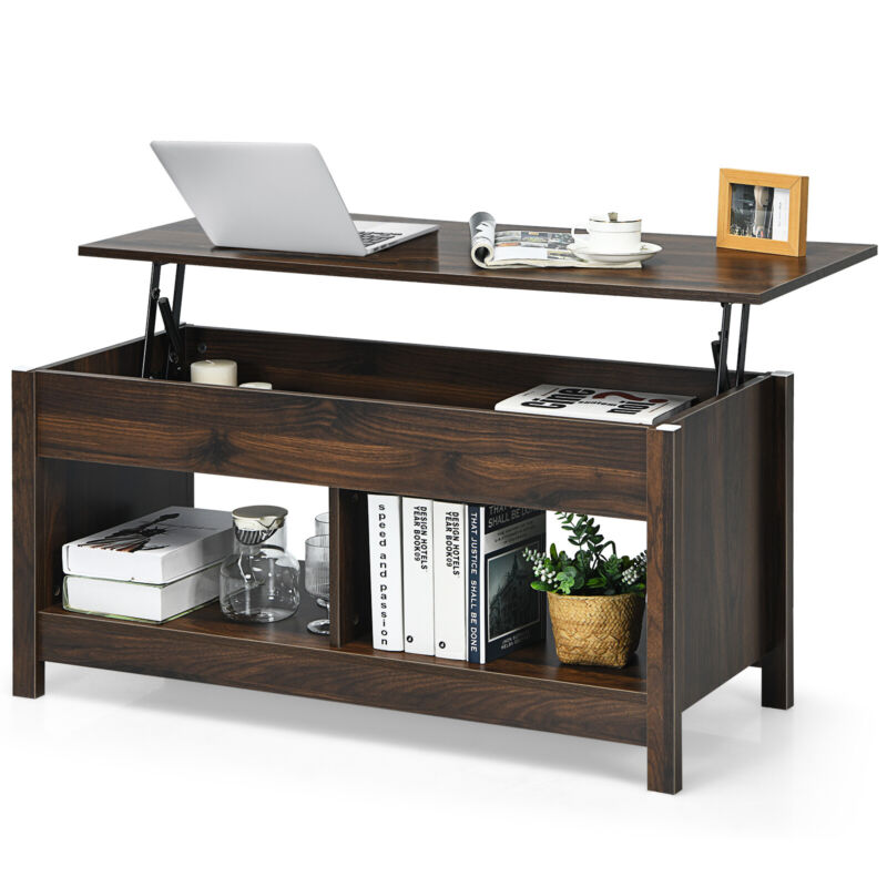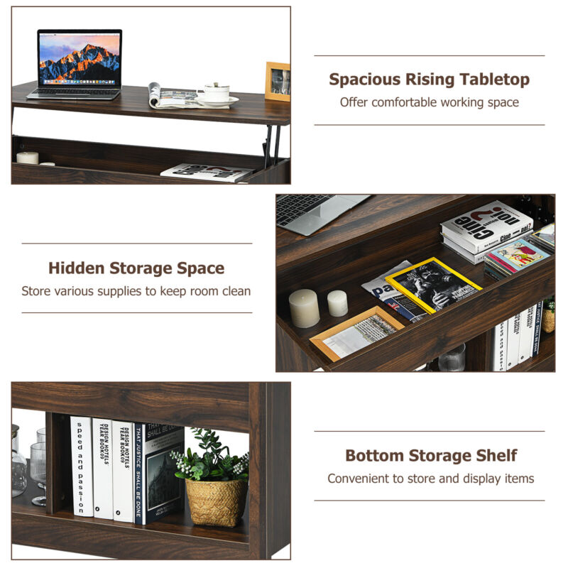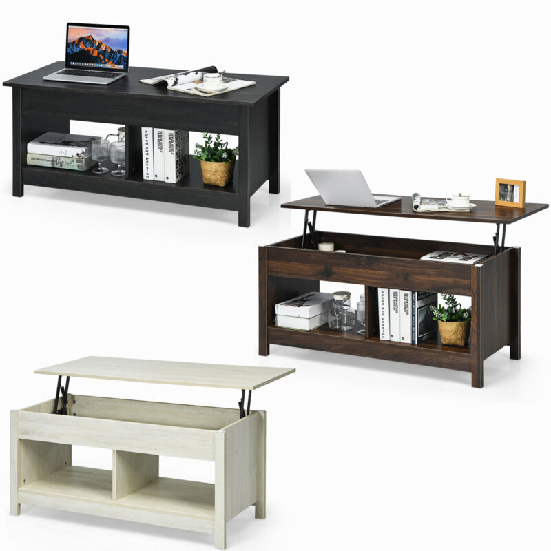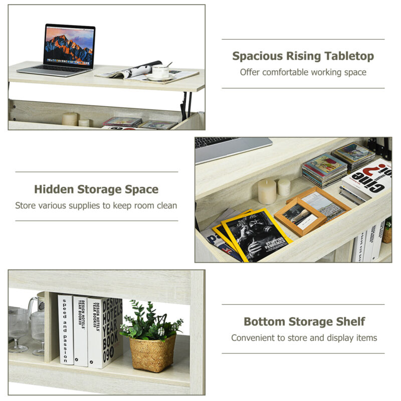 110cm Modern Lift Up Top Coffee Table Desk W/ Hidden Storage & Divided Shelf
