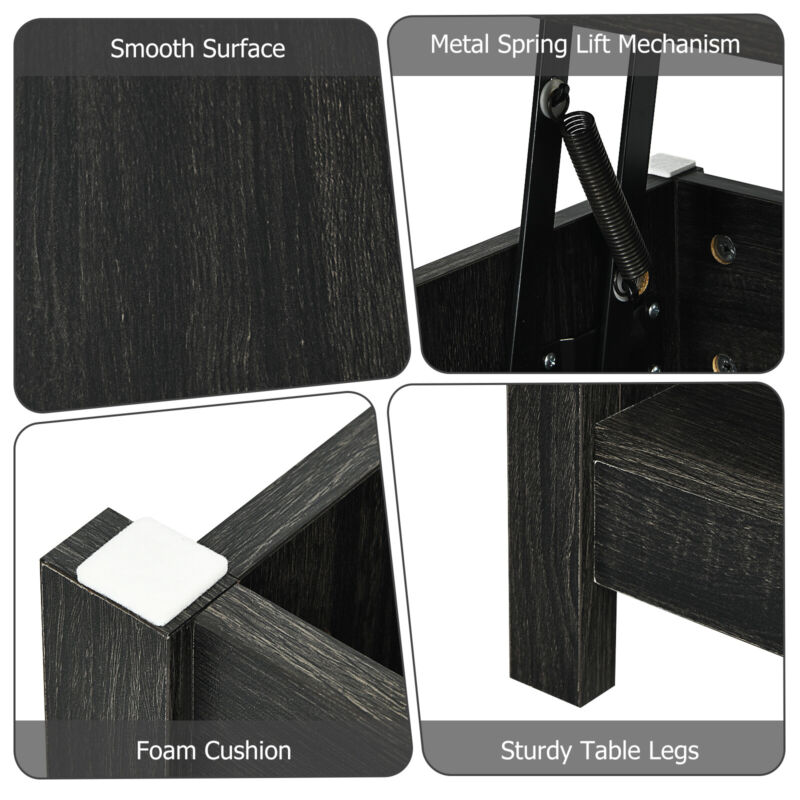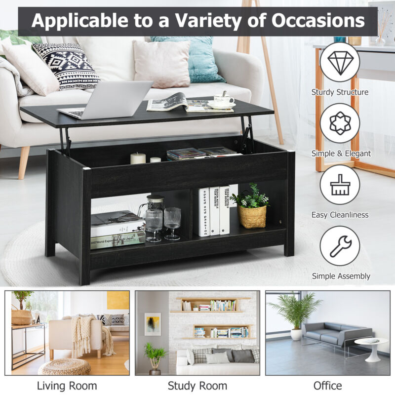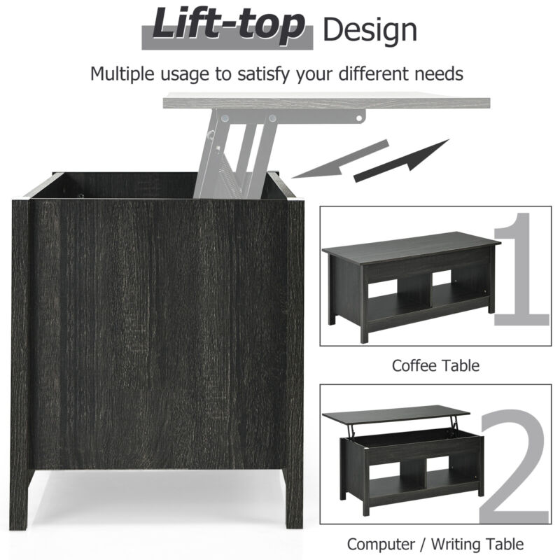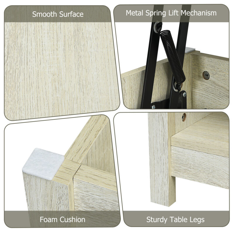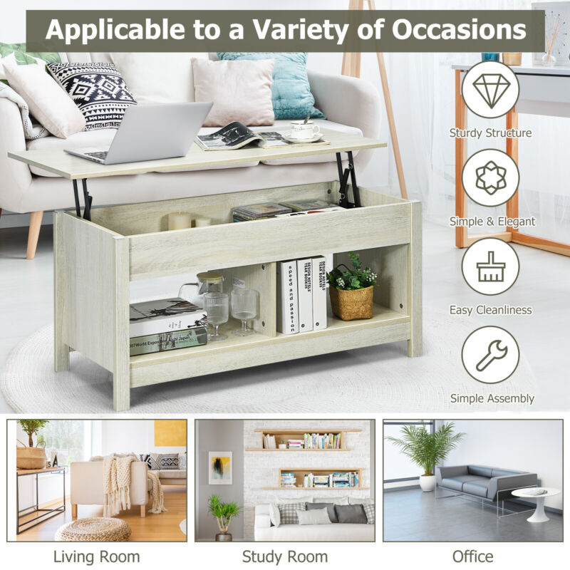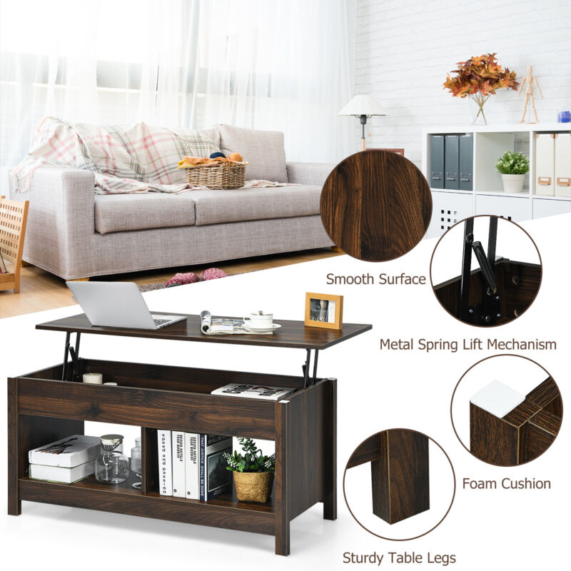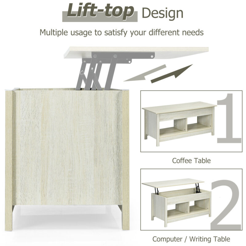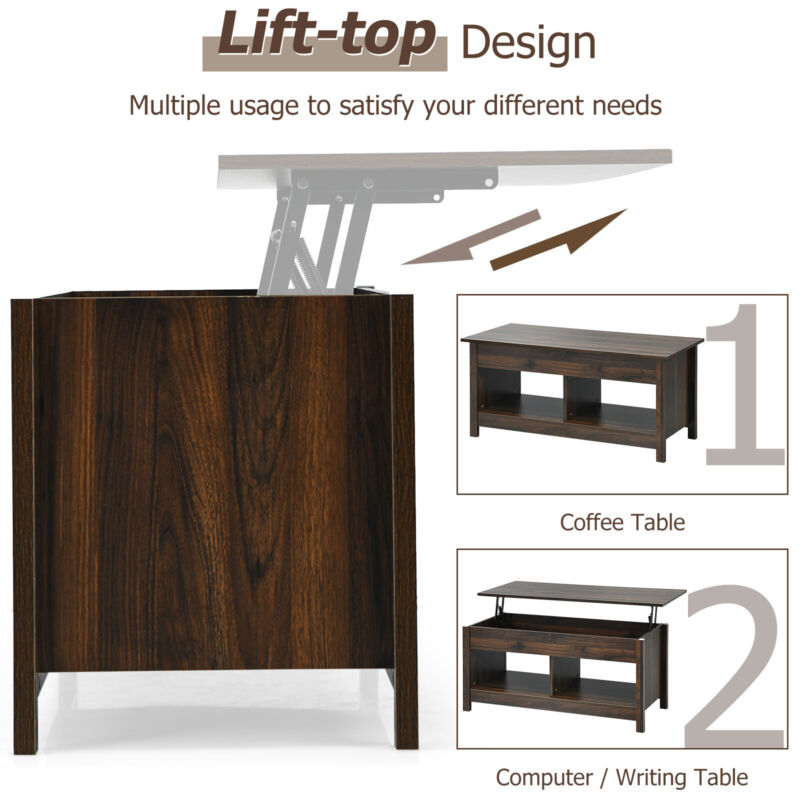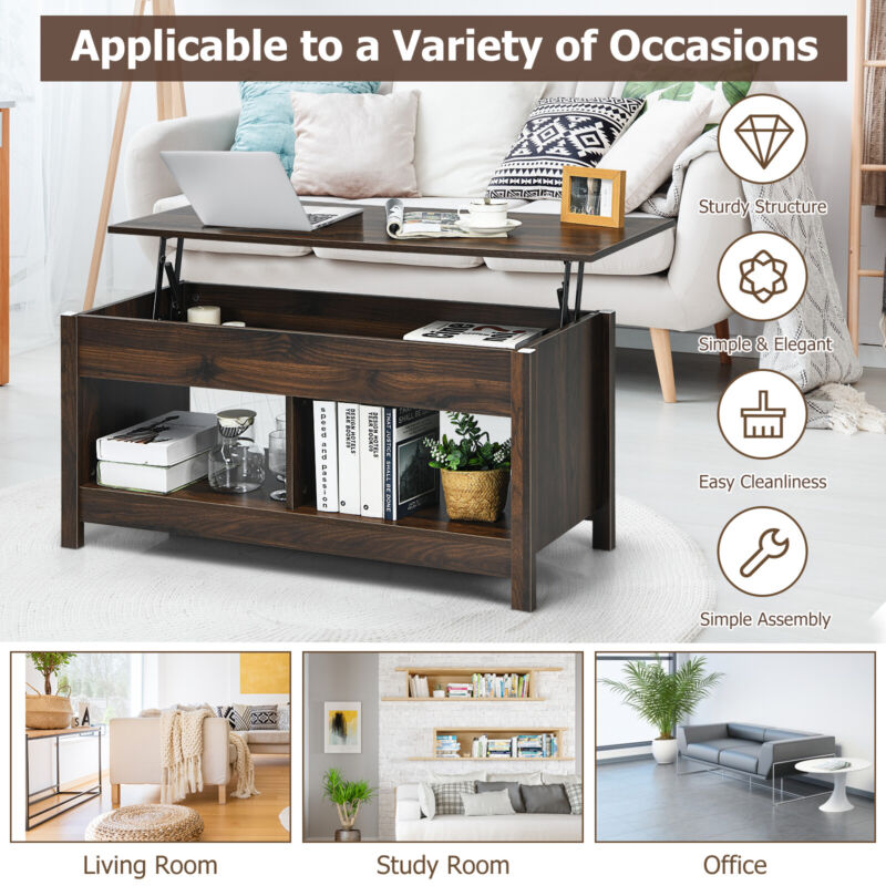 110cm Modern Lift Up Top Coffee Table Desk W/ Hidden Storage & Divided Shelf