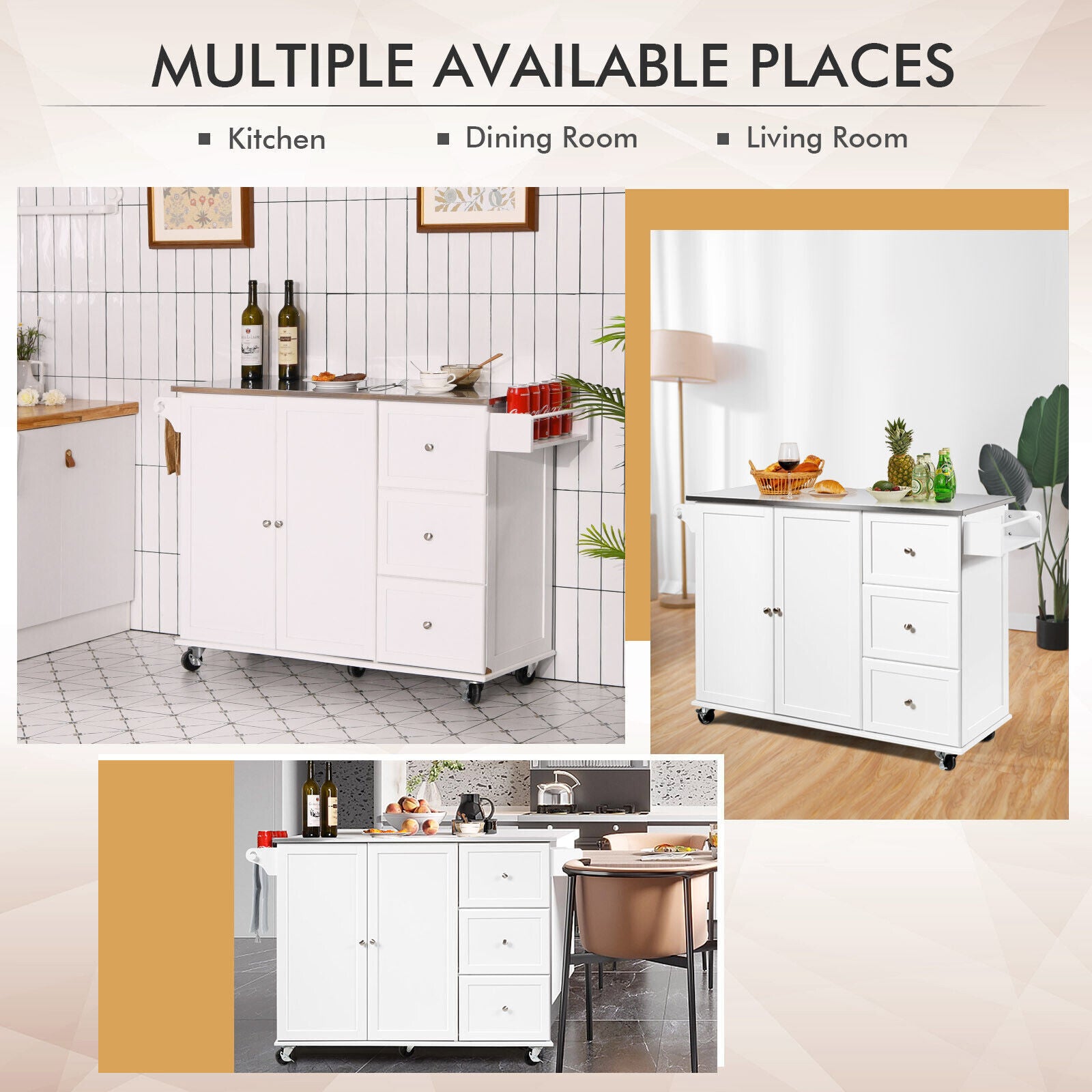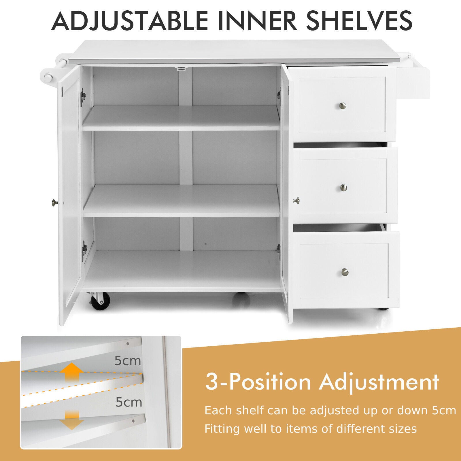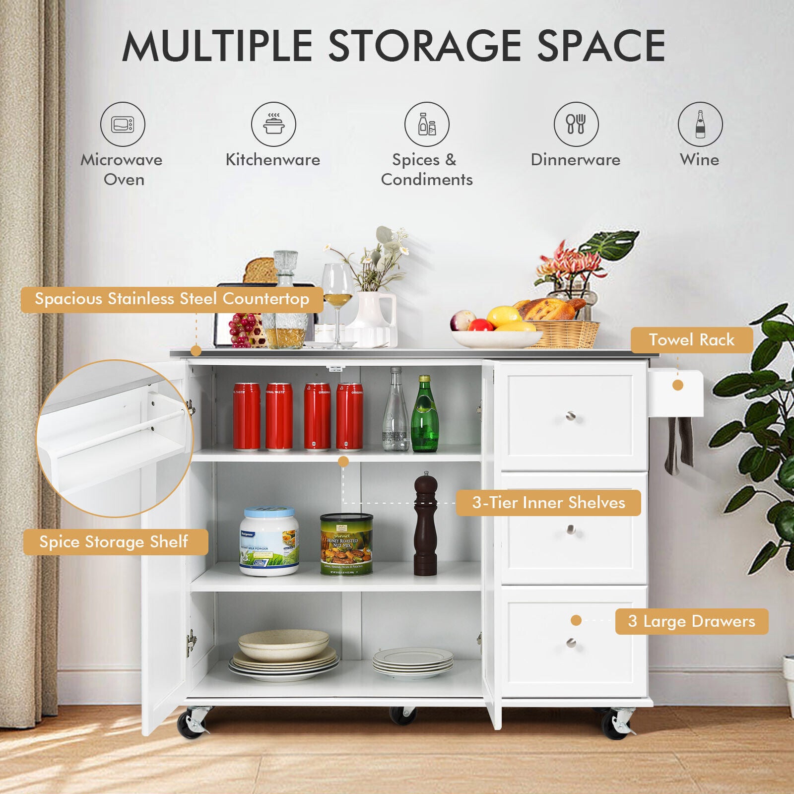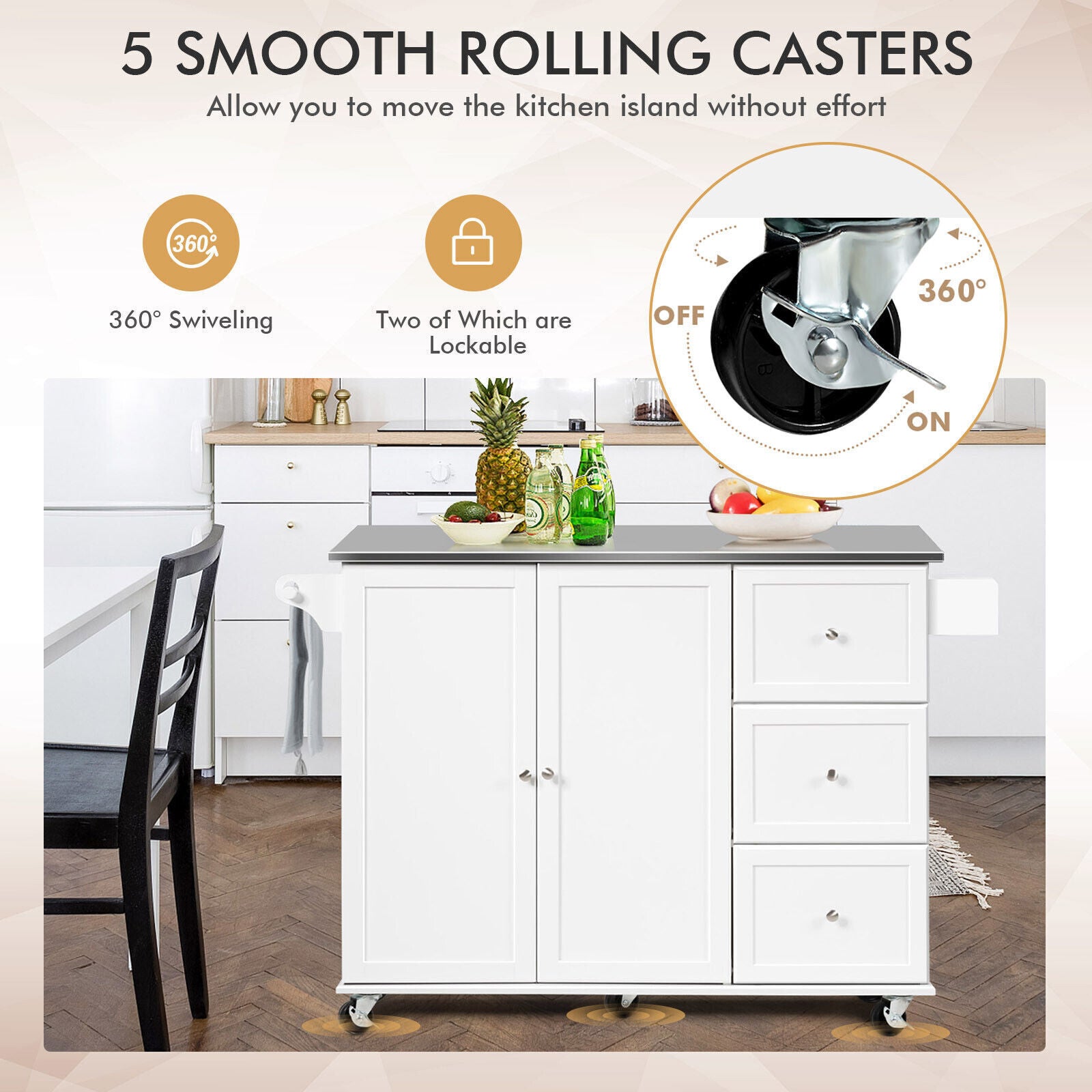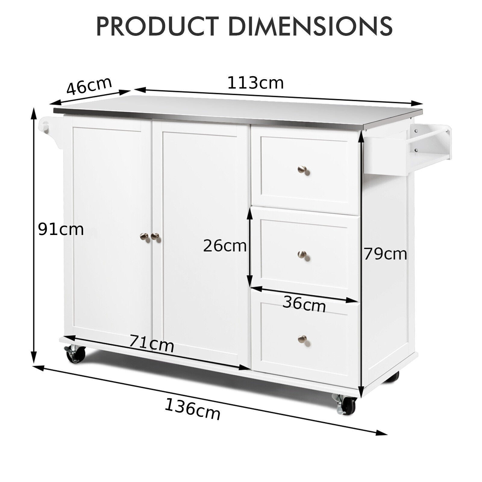 113x46CM Rolling Kitchen Island Cart Utility Storage Cart w/5 Wheels White
