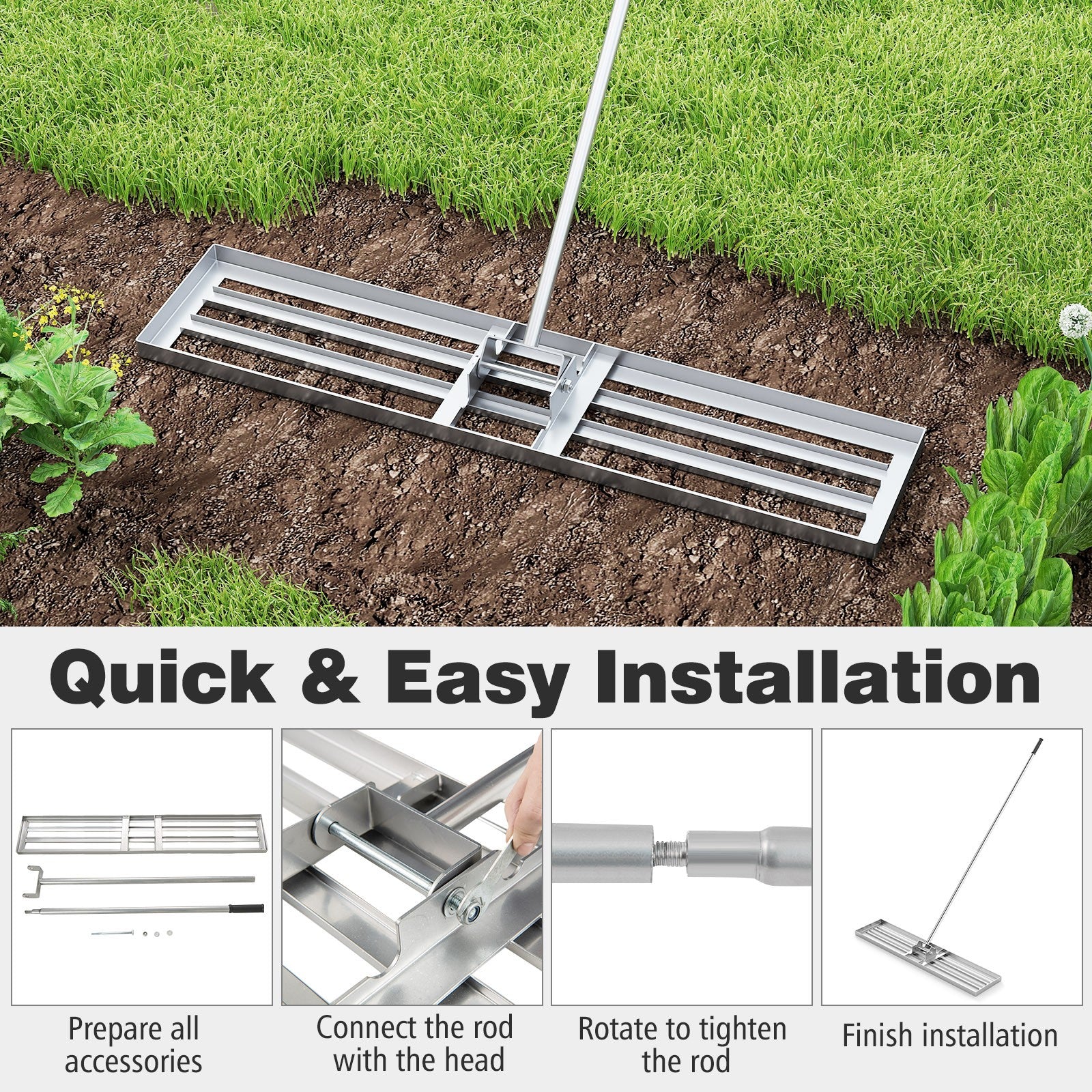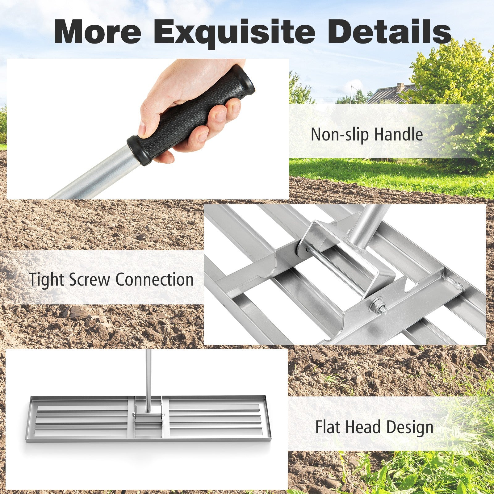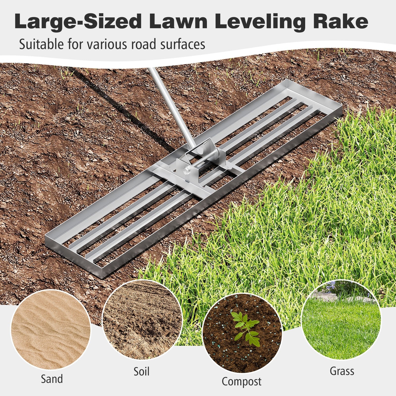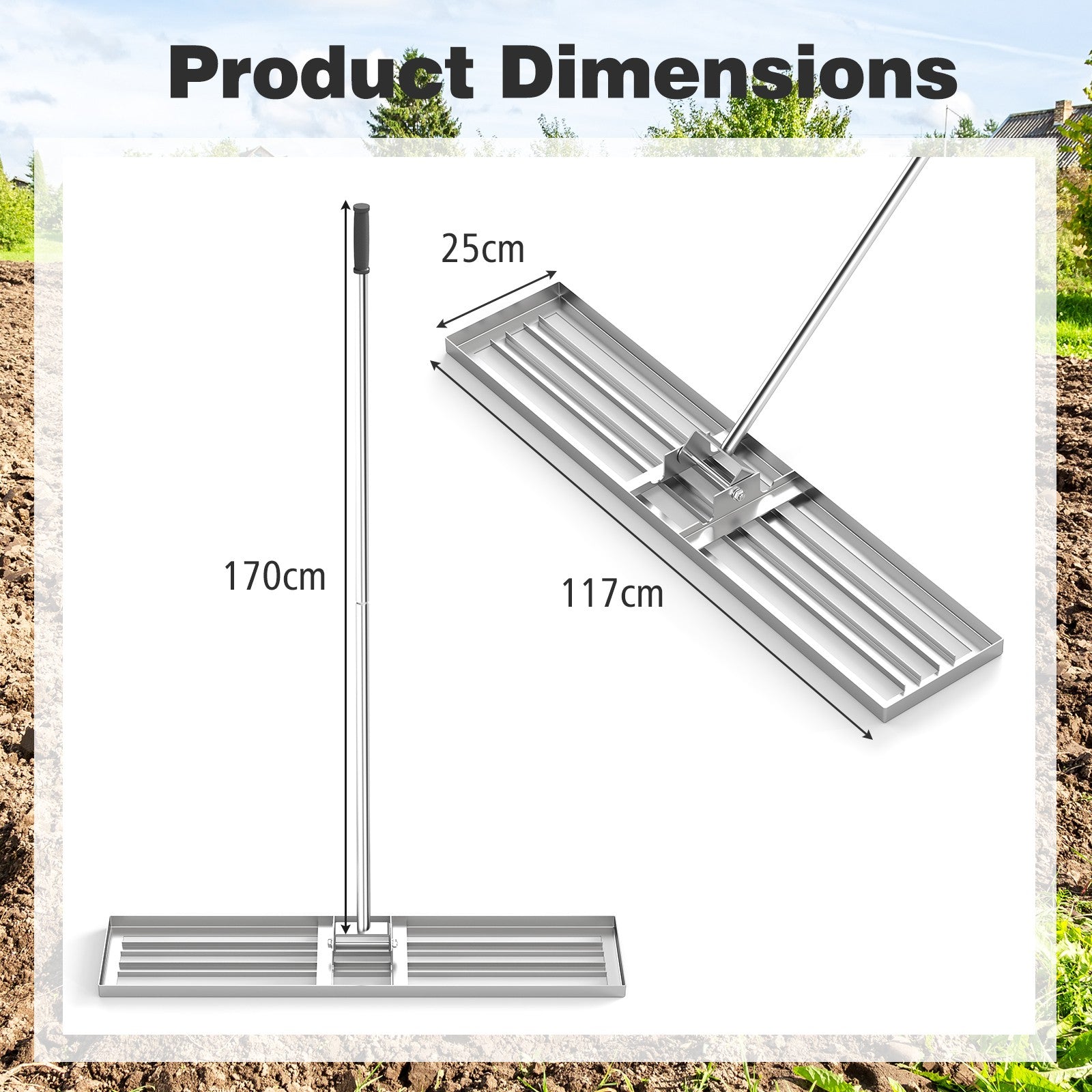 117 cm x 25 cm Heavy Duty Level Lawn Tool Lawn Leveling Rake-Silver