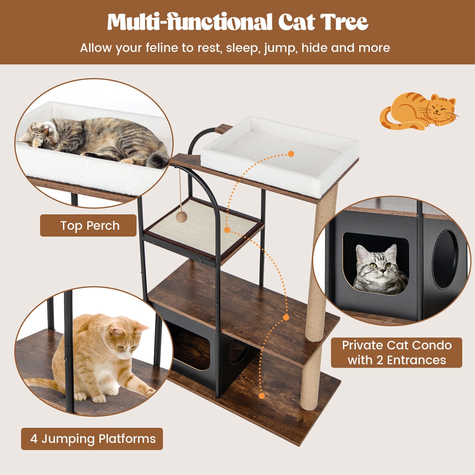 118 cm Tall Cat Tree Tower Large Cat Activity Center Indoor Climbing Furniture