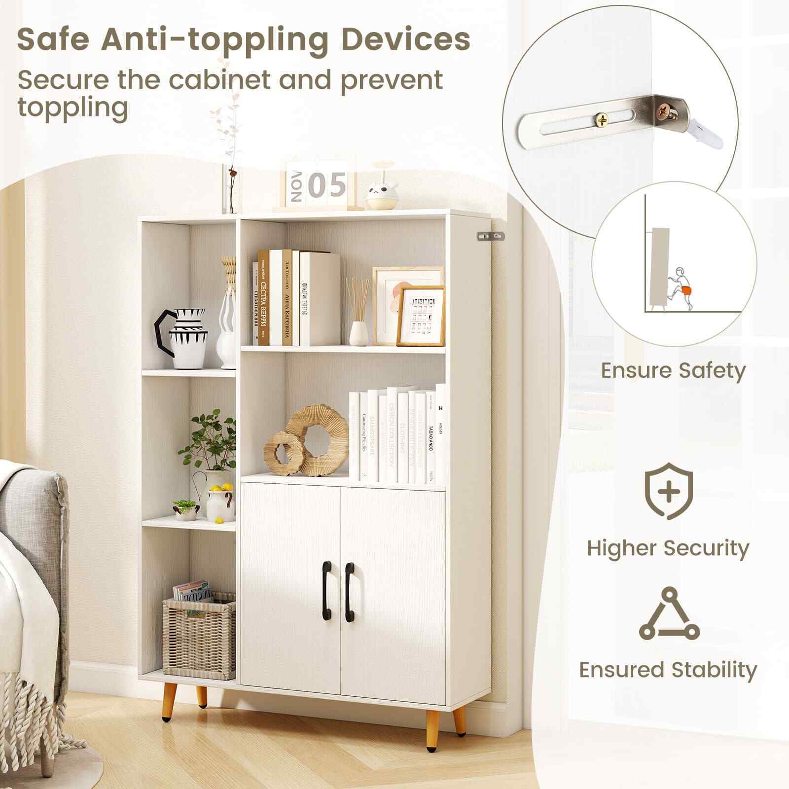 119 cm Floor Bookshelf Office Bookcase w/ Storage Cabinet-White