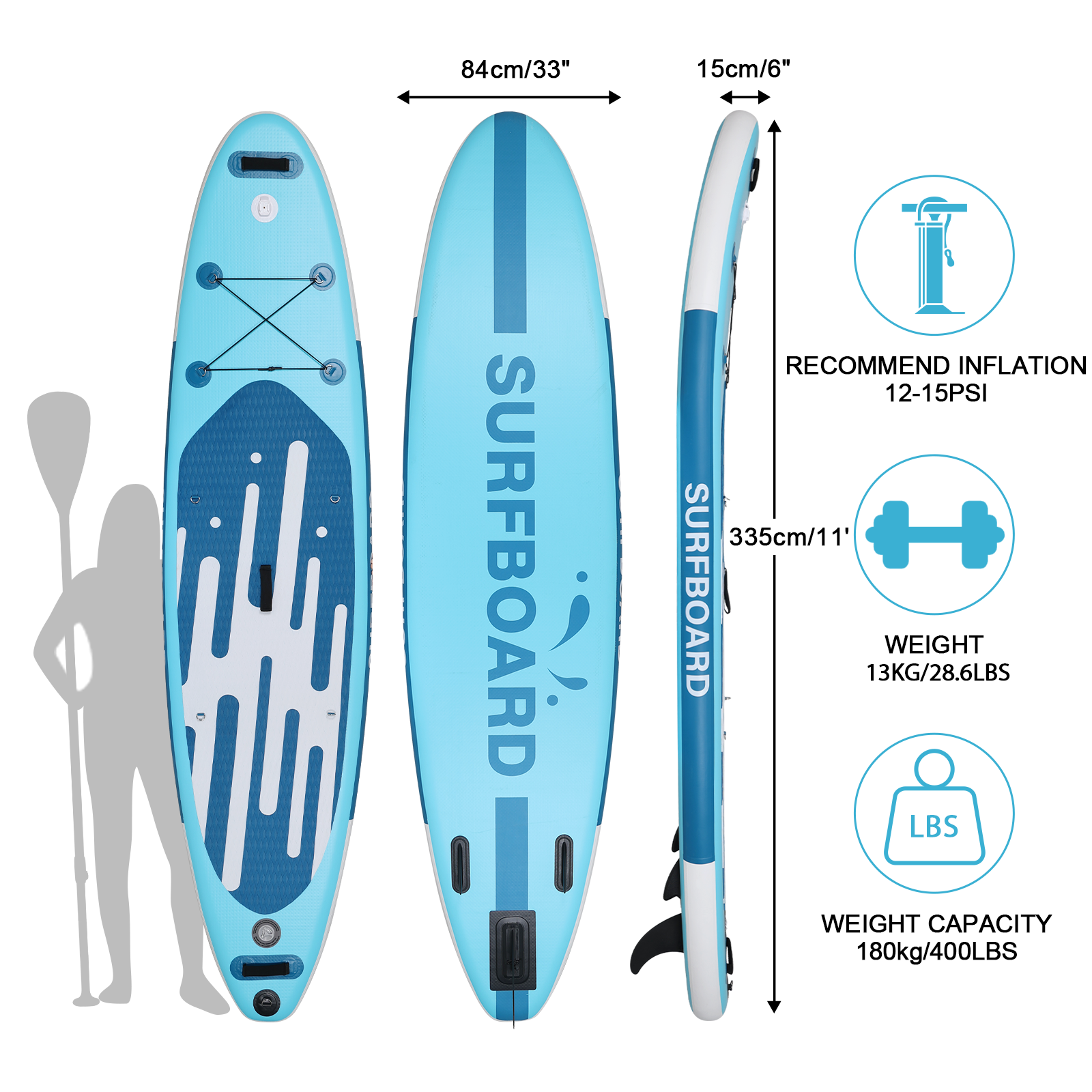 11FT Inflatable Stand Up Paddle Board Complete Kit SUP Surfboard Pump Blue