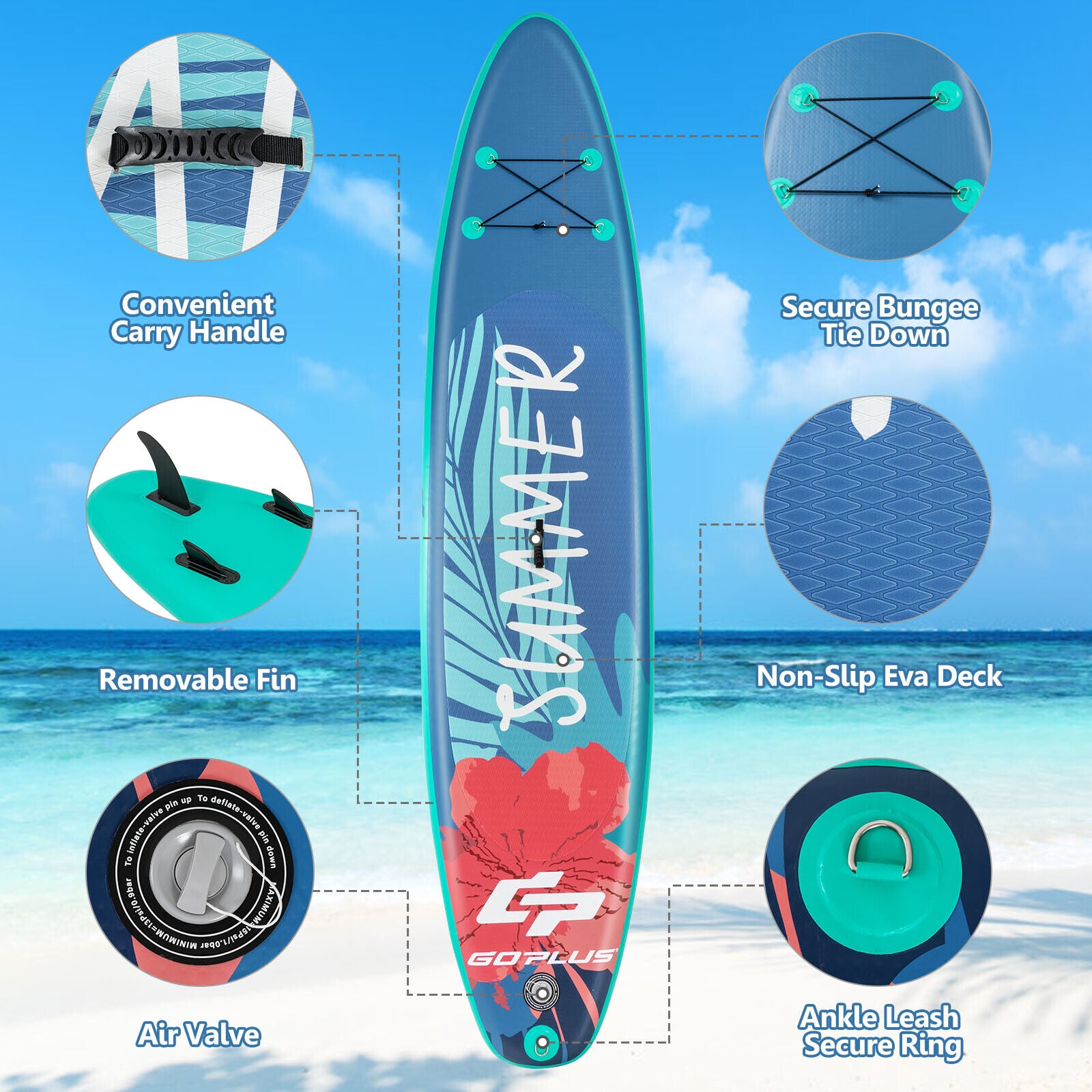 11FT Inflatable Stand Up Paddle Board SUP Surfboard Adjustable Non-Slip Deck
