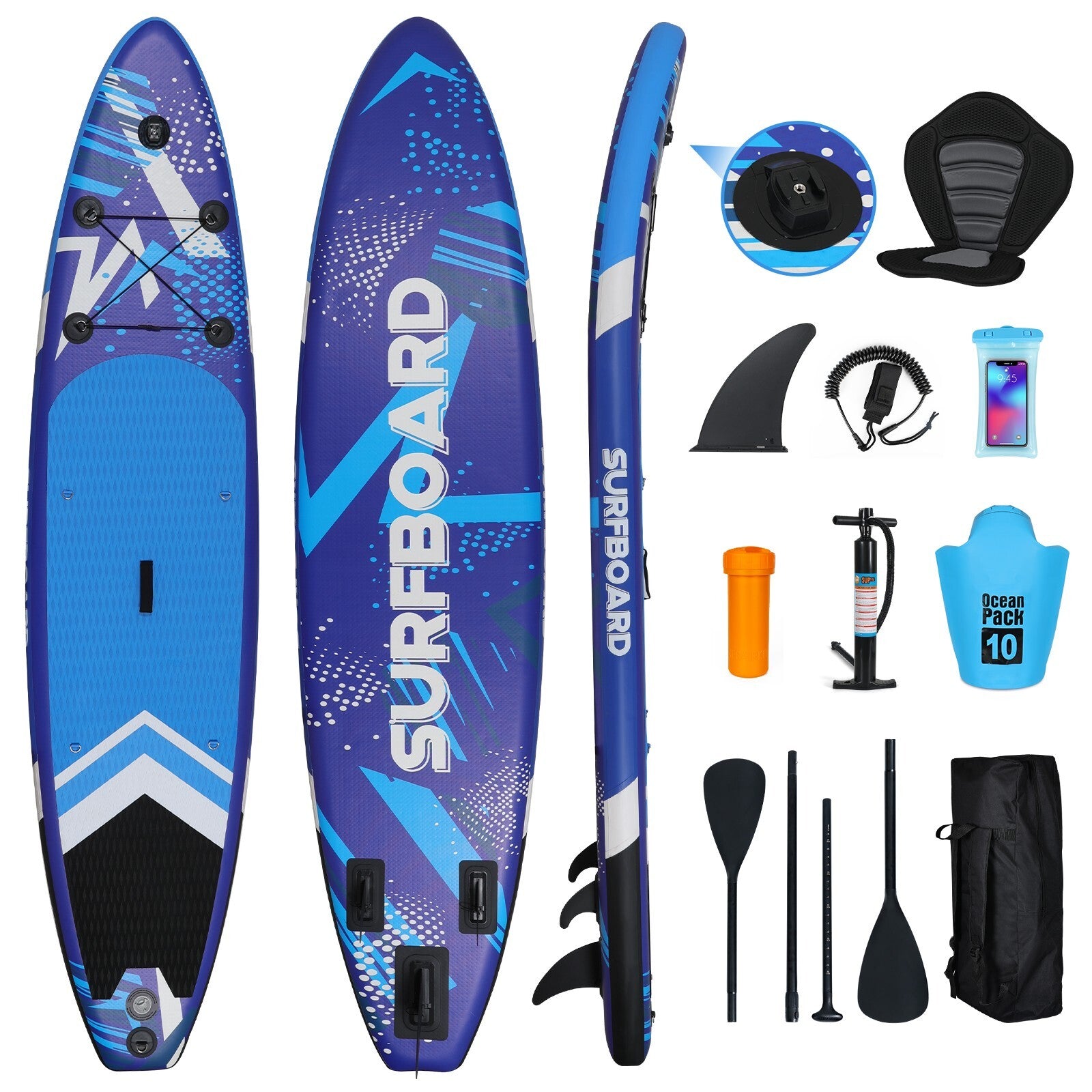11FT Stand Up Paddle Board Inflatable SUP Surfboard Kayak Seat Complete Kit Blue