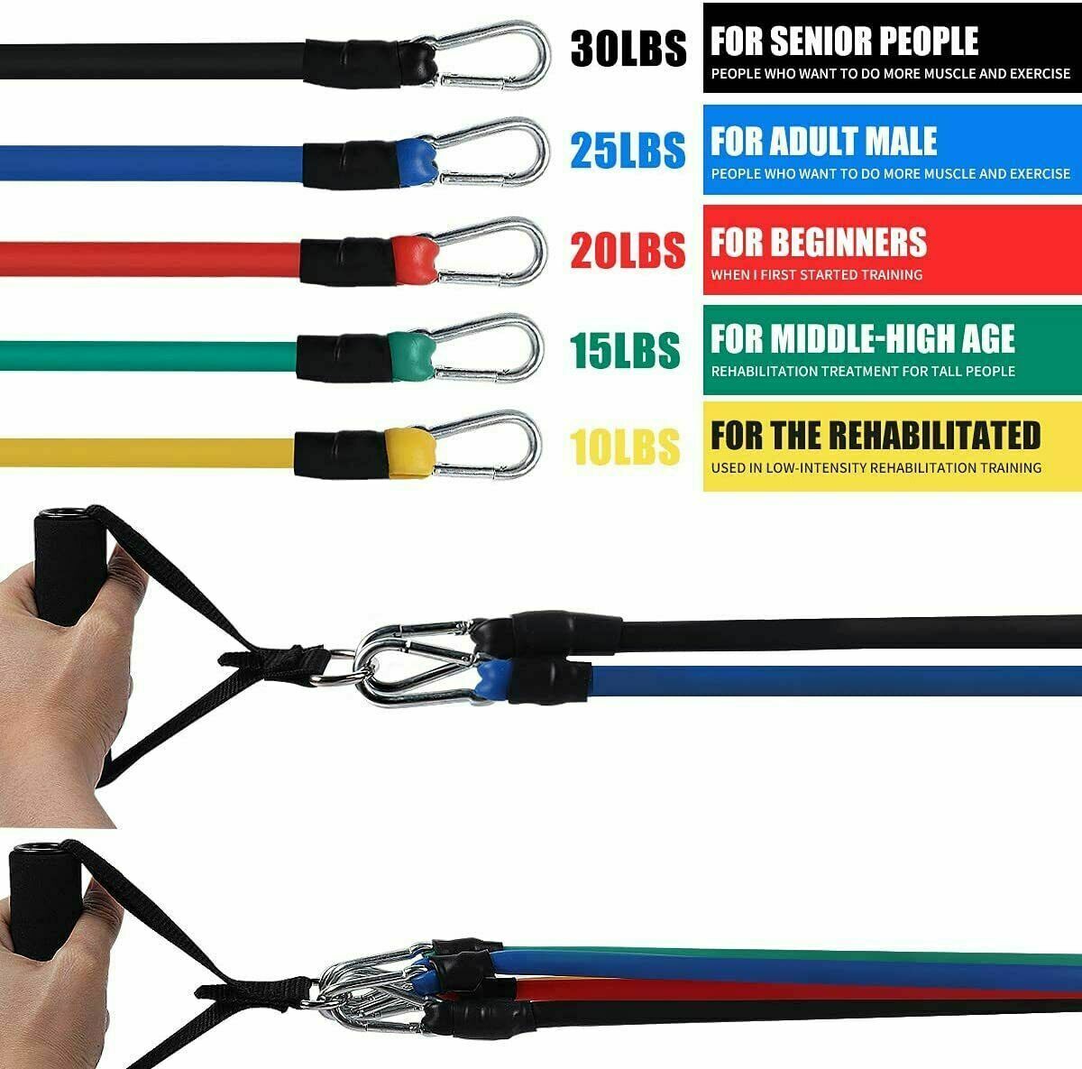 11PCS Set Resistance Bands Workout Exercise Crossfit Fitness Yoga Training Tubes