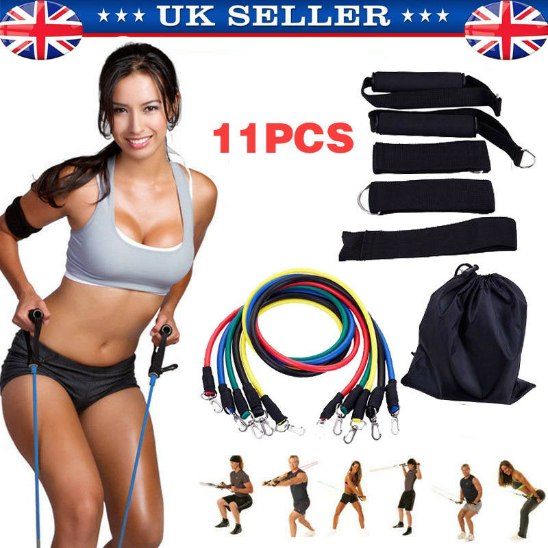 11x Fitness Resistance Band Rope Tube Latex Elastic Exercise For Gym Yoga Pilate