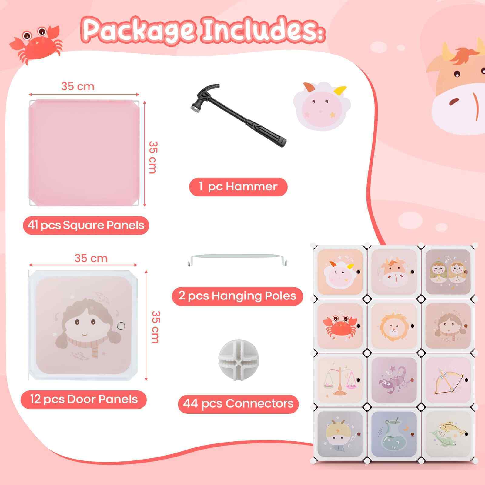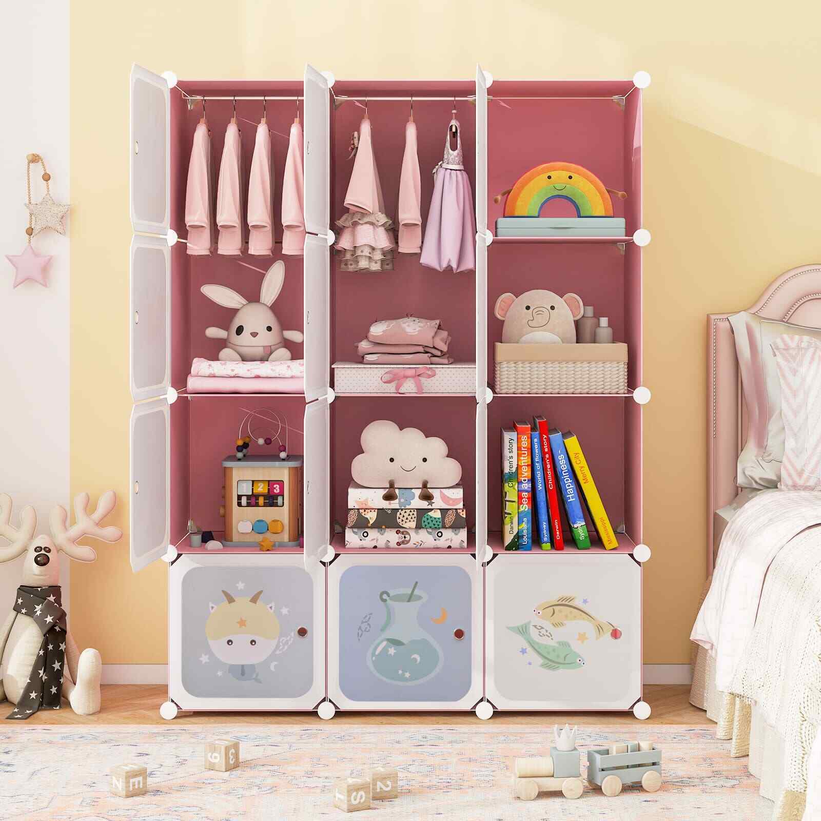 12-Cube Baby Closet Portable Kids Wardrobe-Pink