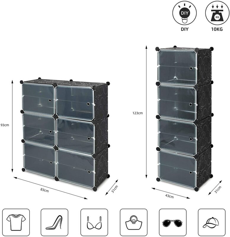12 Cube Plastic Shoe Storage Boxes Cabinet Cupboard Organizer Shelf Stand Unit