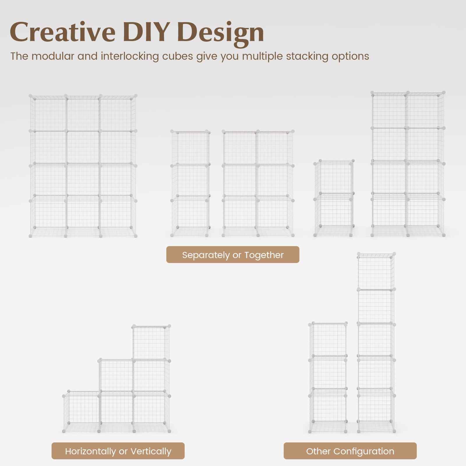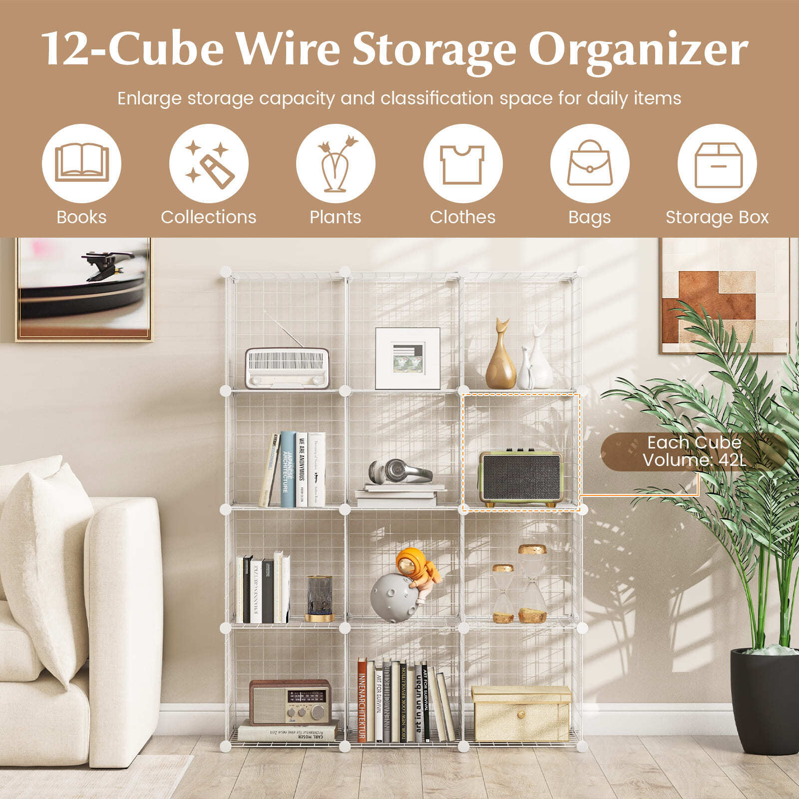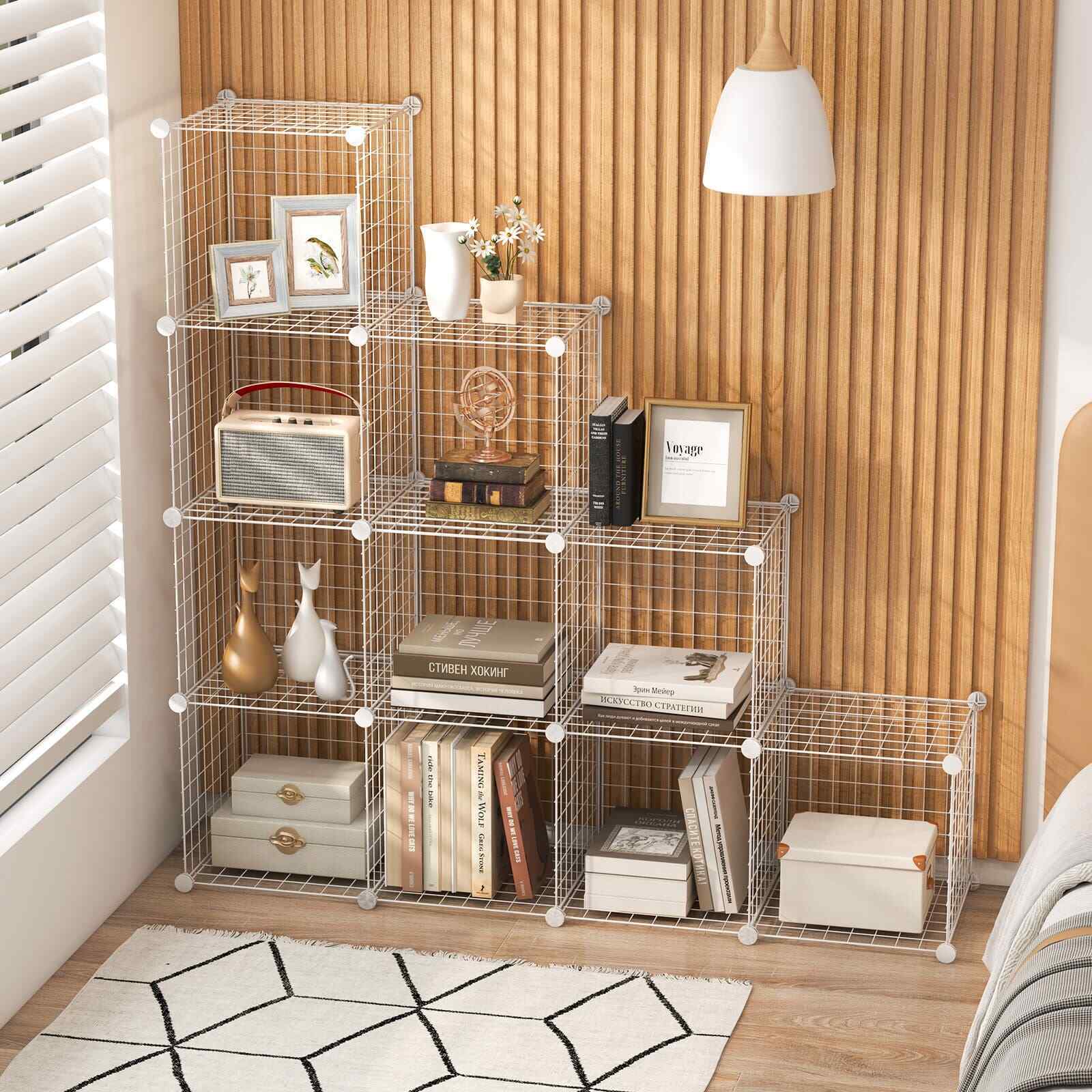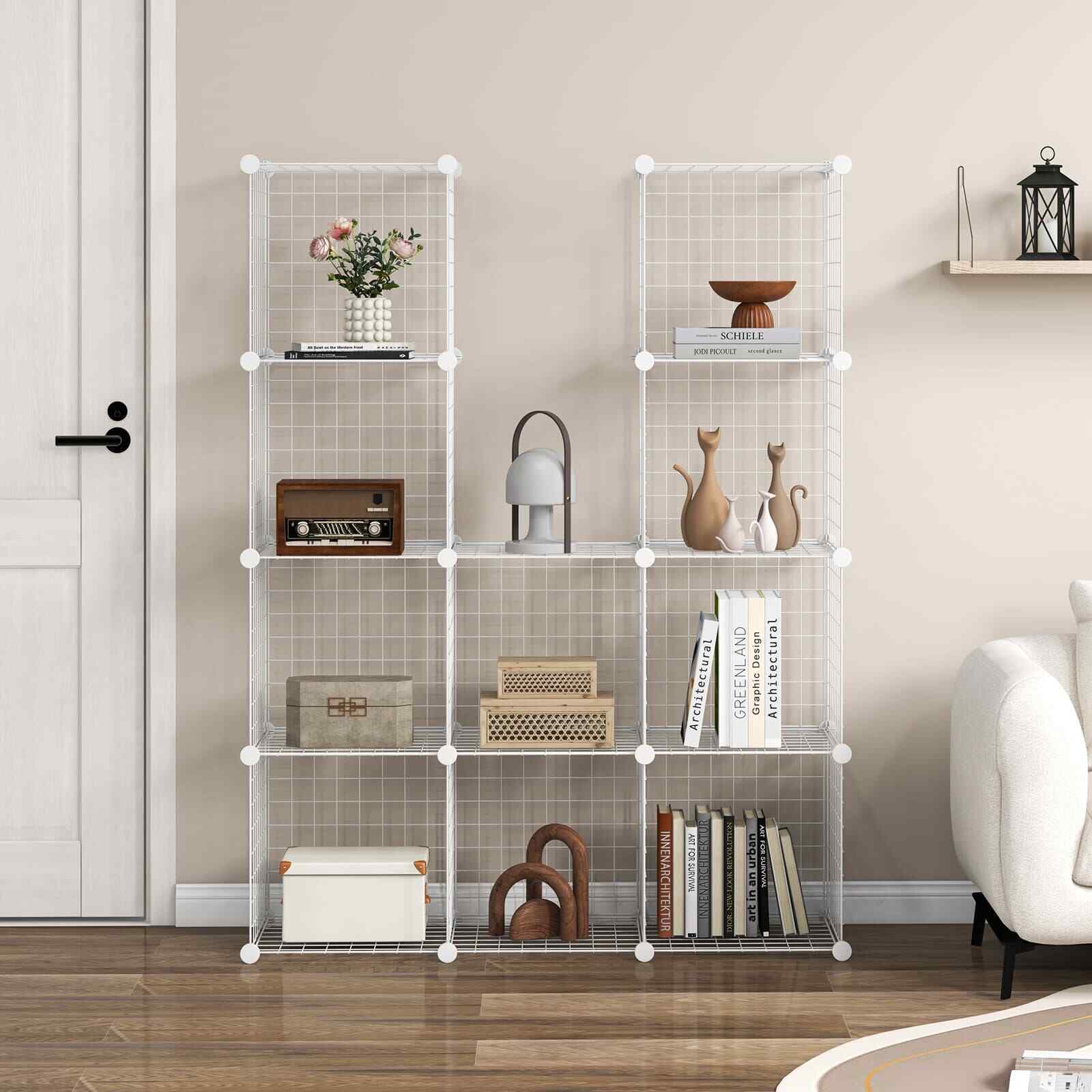 12 Cube Storage Rack DIY Metal Wire Grid Bookcase
