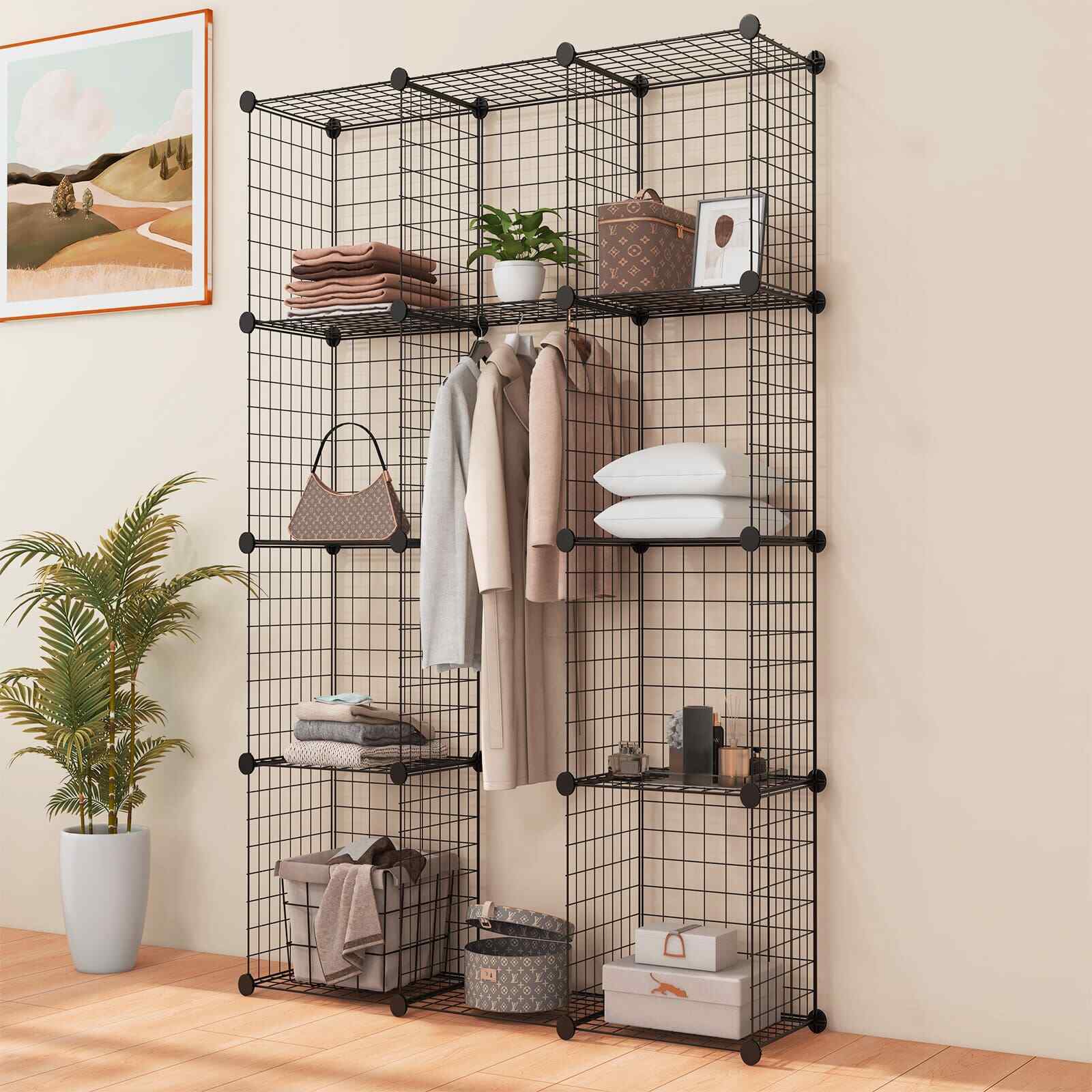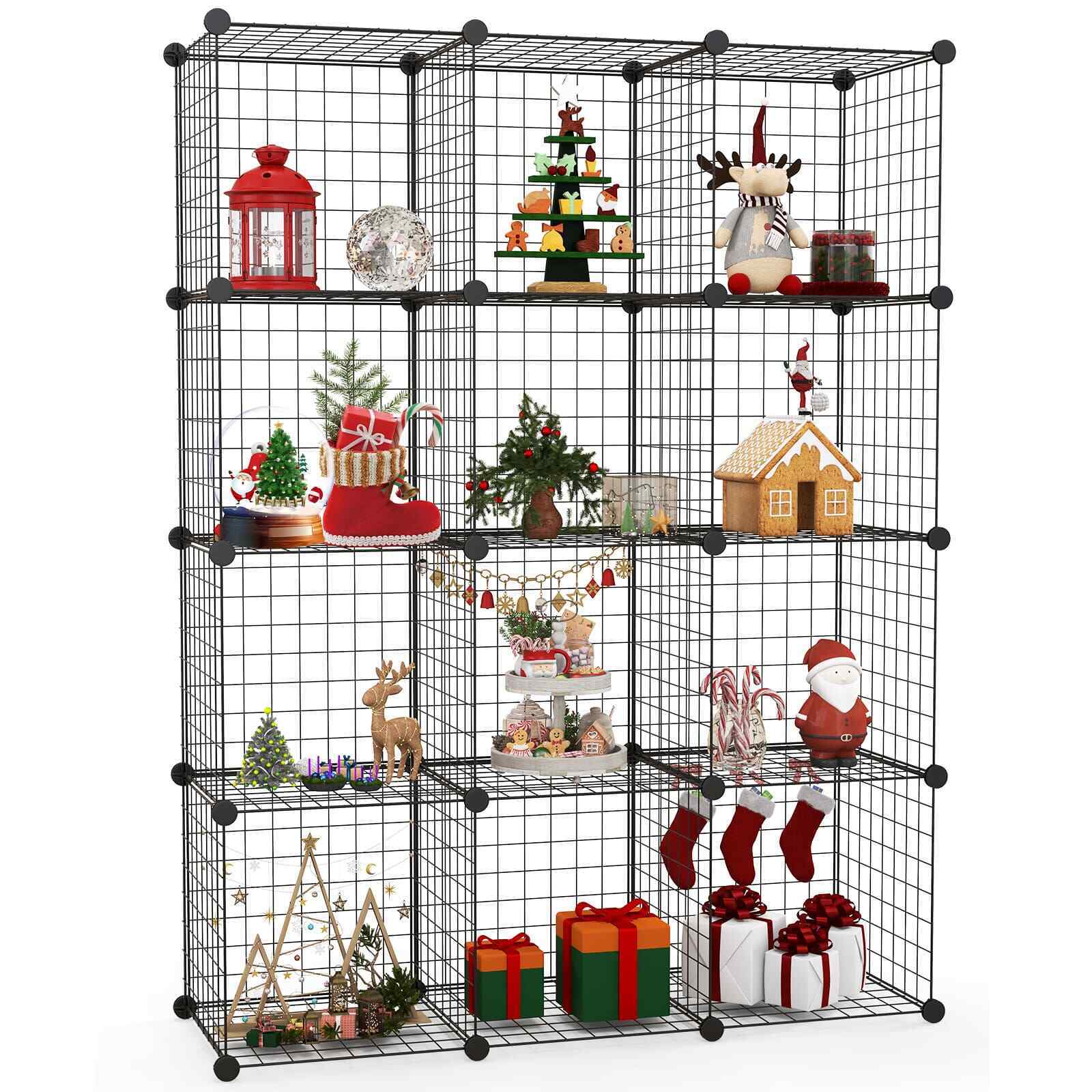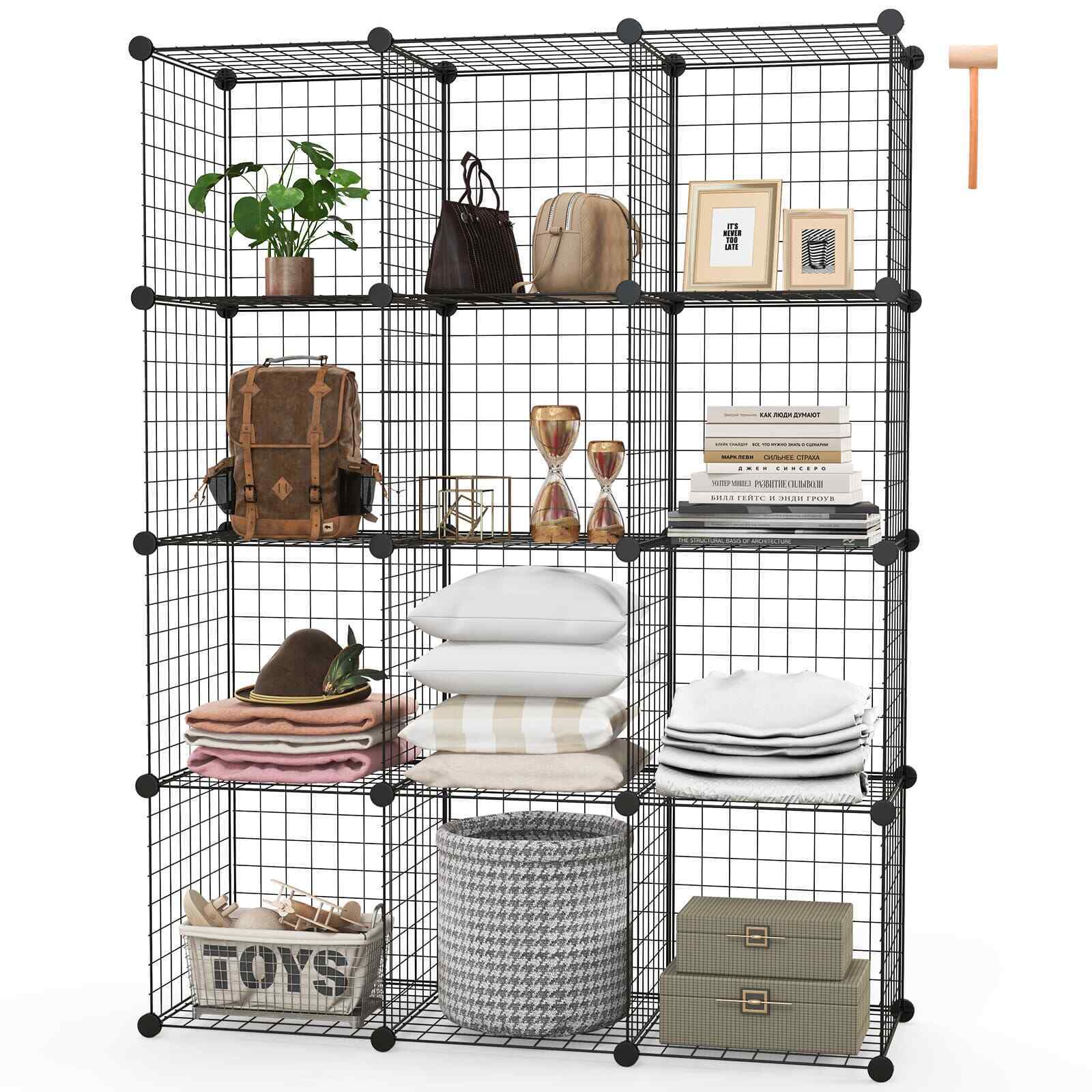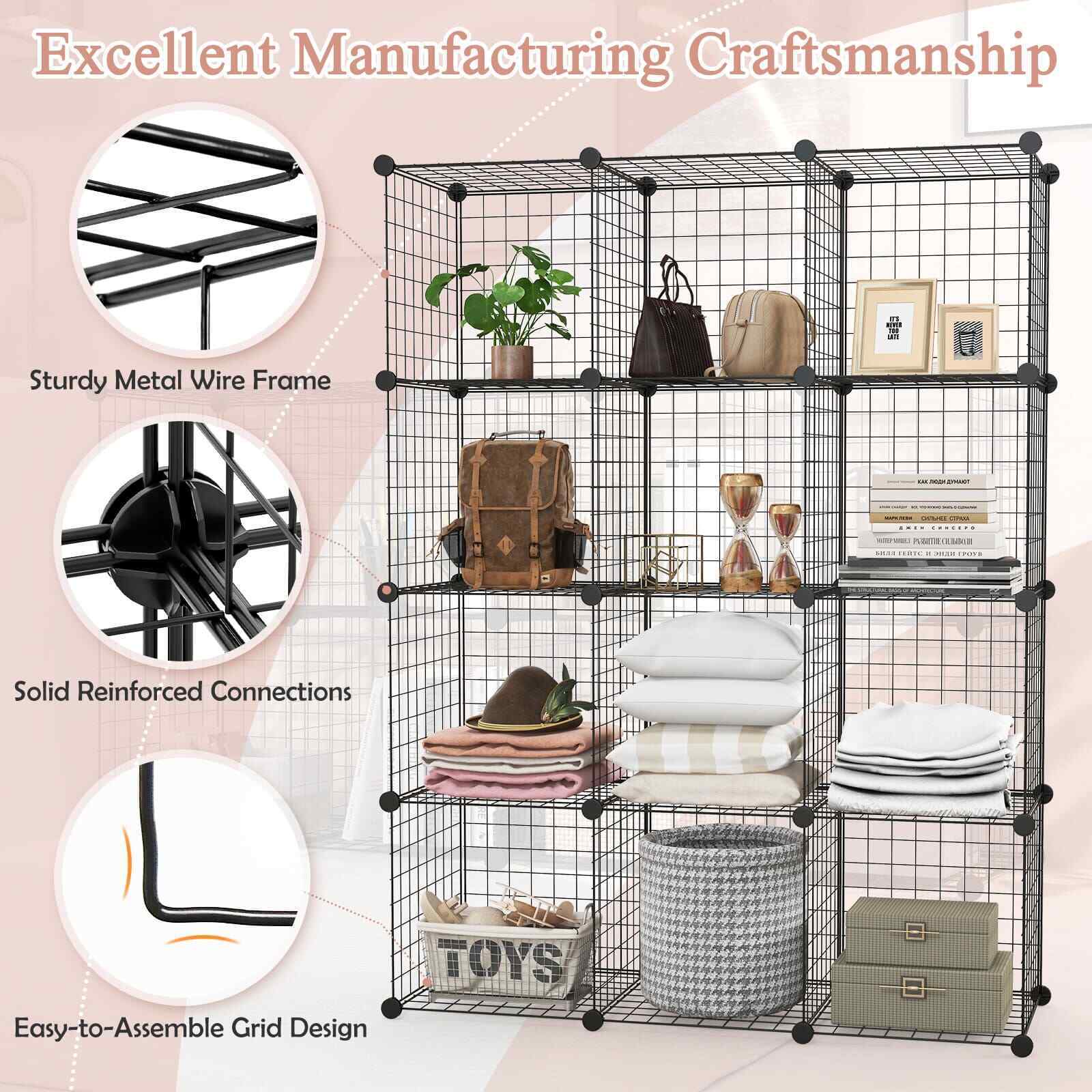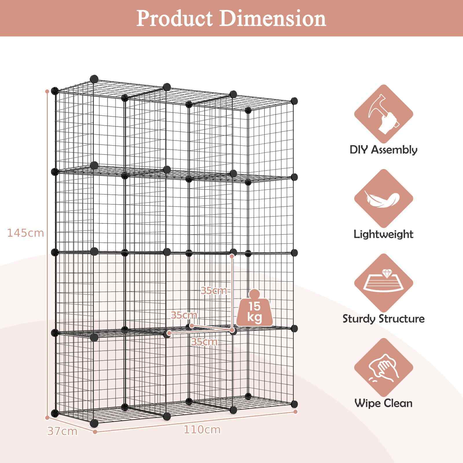 12 Cube Storage Shelf Rack DIY Wire Grid Bookcase Display Cabinet Organiser
