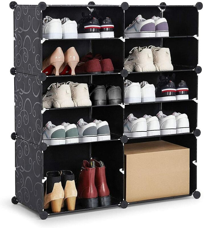 12 Cubes DIY Shoe Bookcase Plastic Boxes Organizer Rack Stand Storage Cabinet