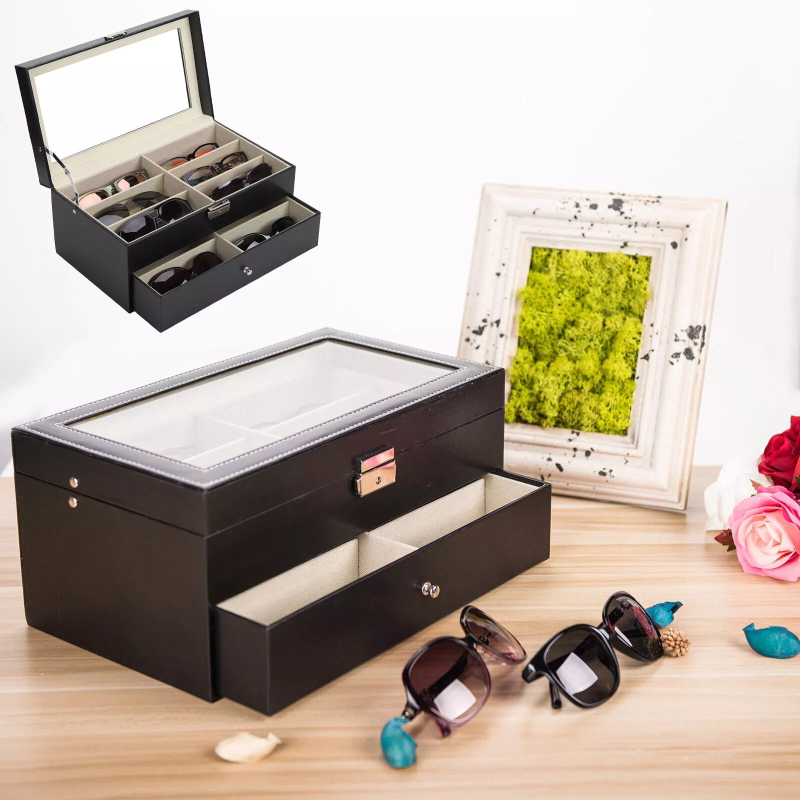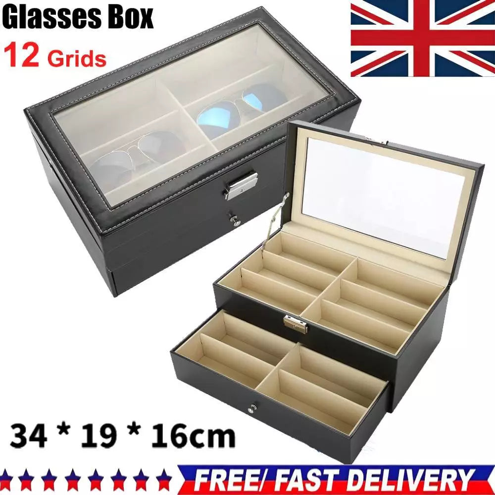 12 Grids Eyeglass Sunglasses Glasses Storage Case Display Shop Box Case UK