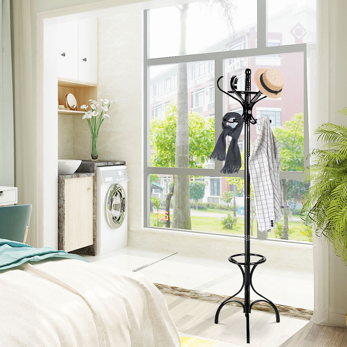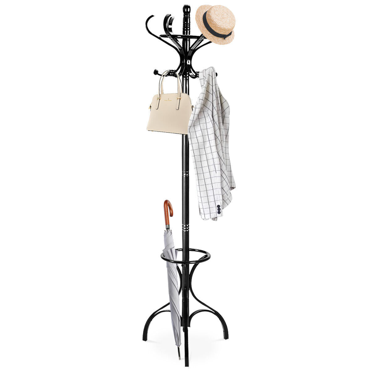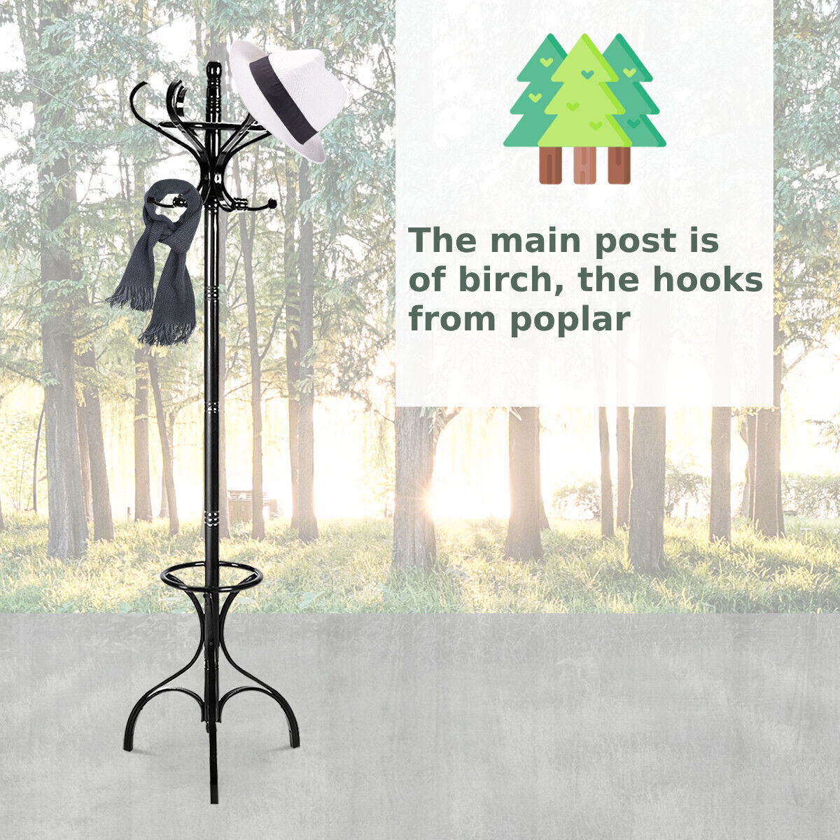 12 Hooks Wooden Coat Stand Coat/Hat/Jacket/Umbrella Free Standing Rack Hanger