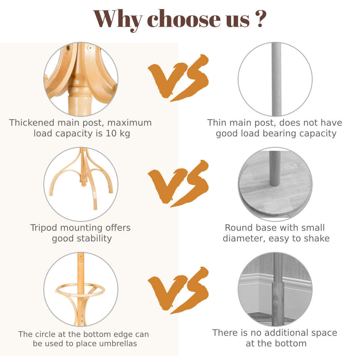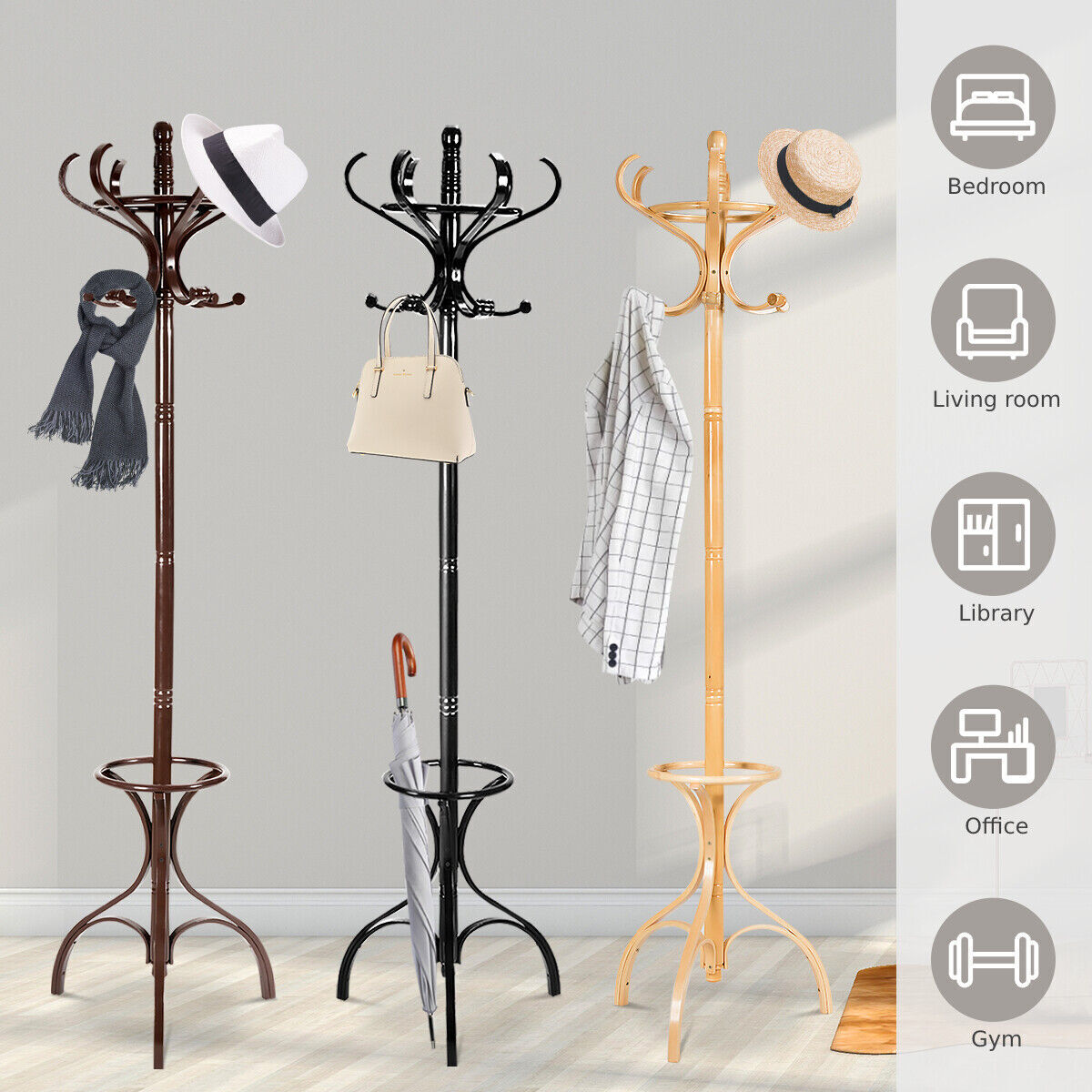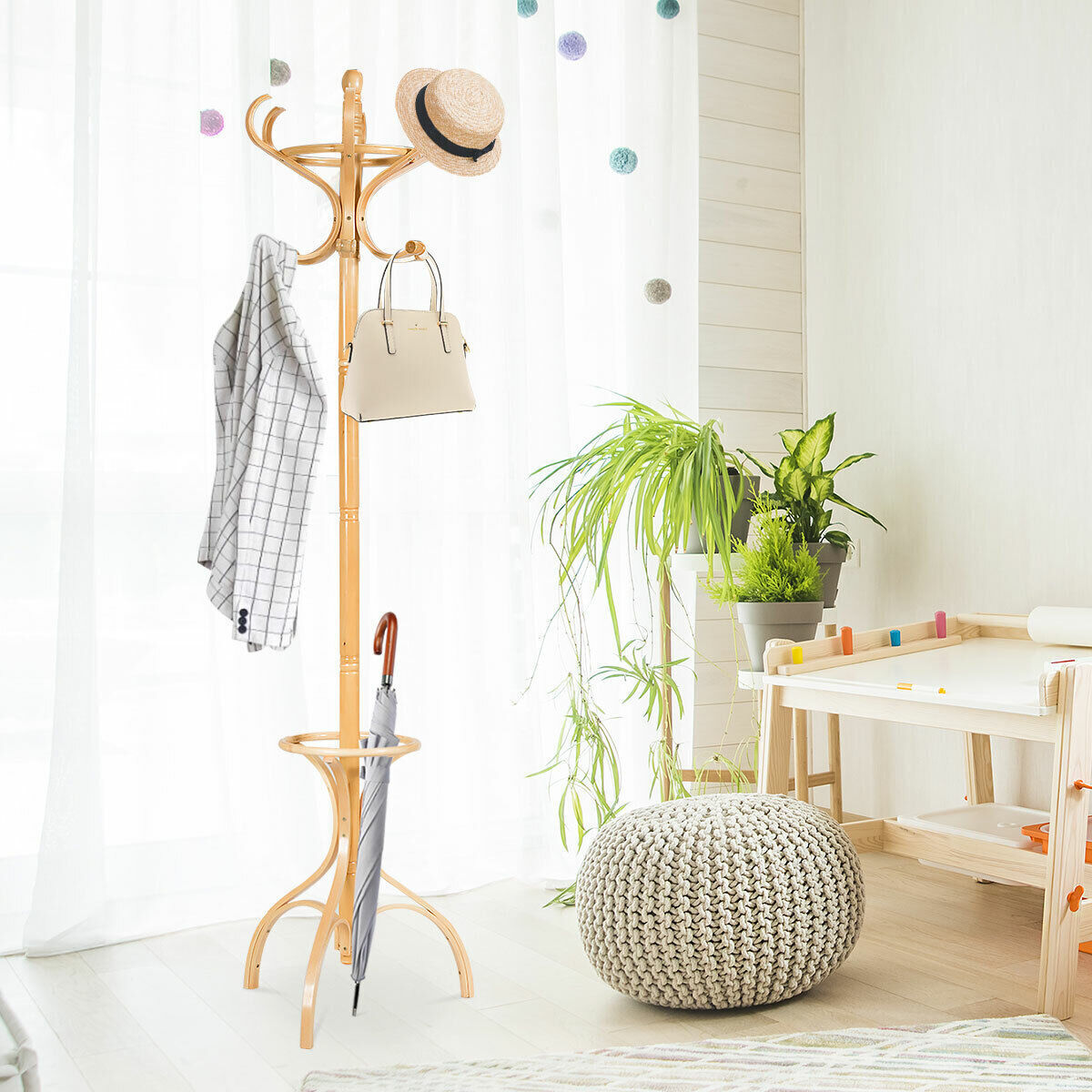 12 Hooks Wooden Coat Stand Coat/Hat/Jacket/Umbrella Standing Rack Hanger-Beige