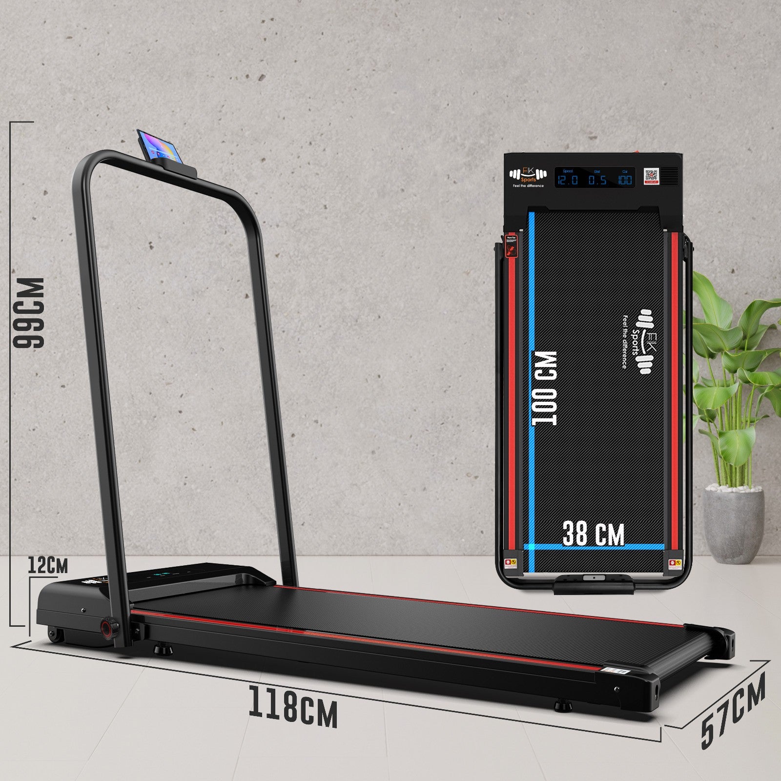 12 Km/h Walking Pad Foldable Smart Running Machine Treadmill Home & Office UK