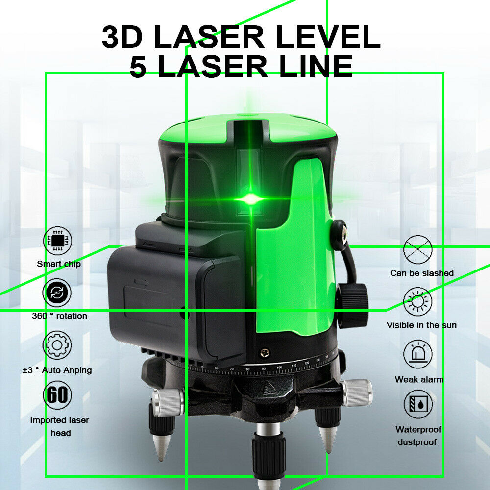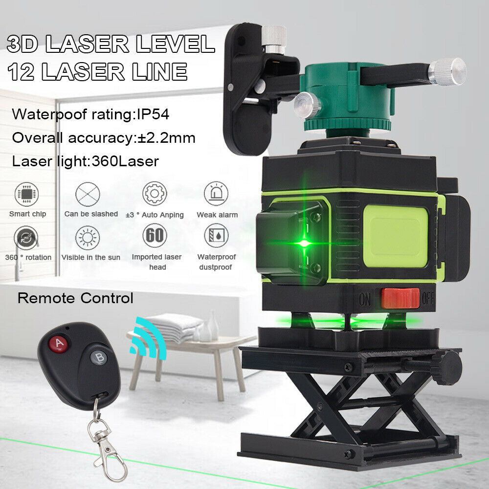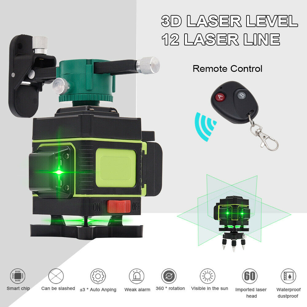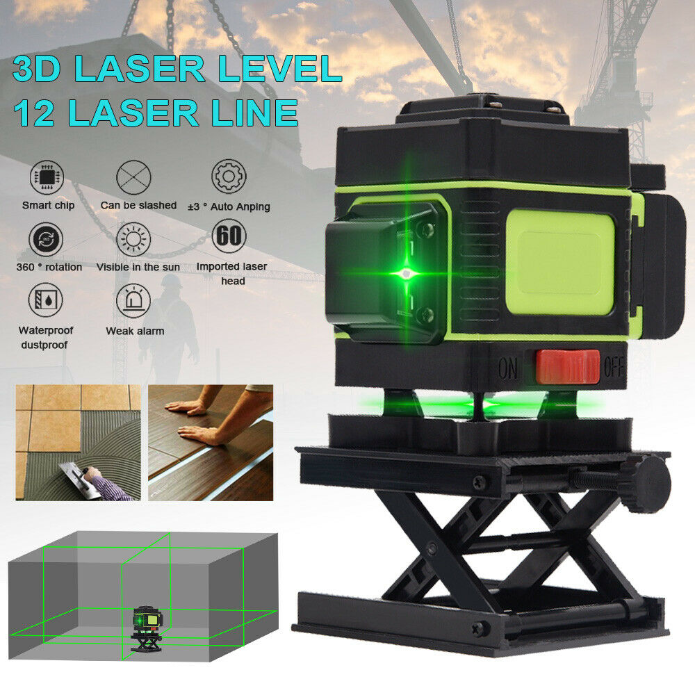 12 Line Laser Level Green Self Leveling 3D 360° Rotary Cross Measure Tool Kit UK