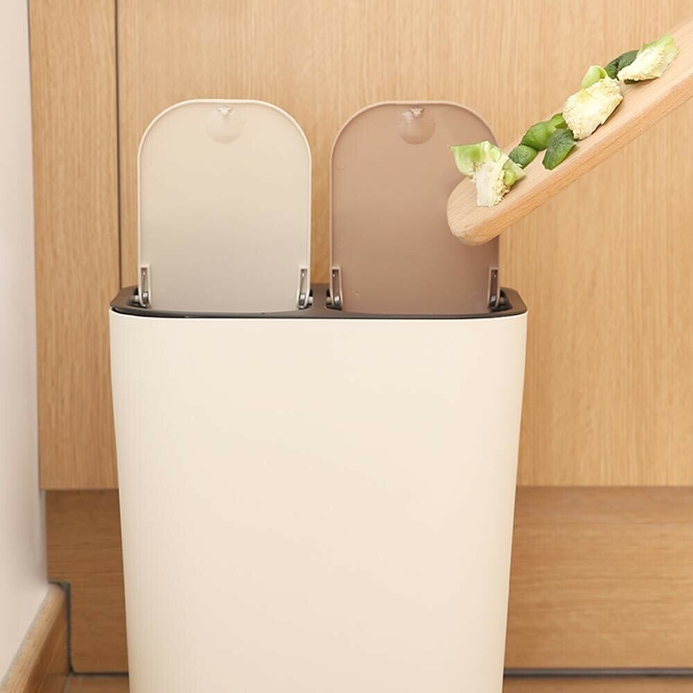 12 Liter Trash Can Rectangle Push-Button Dual Compartment Waste Bin Home Office