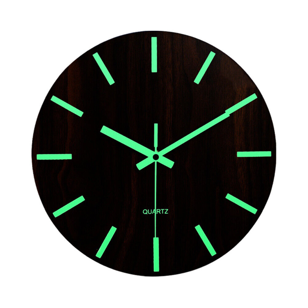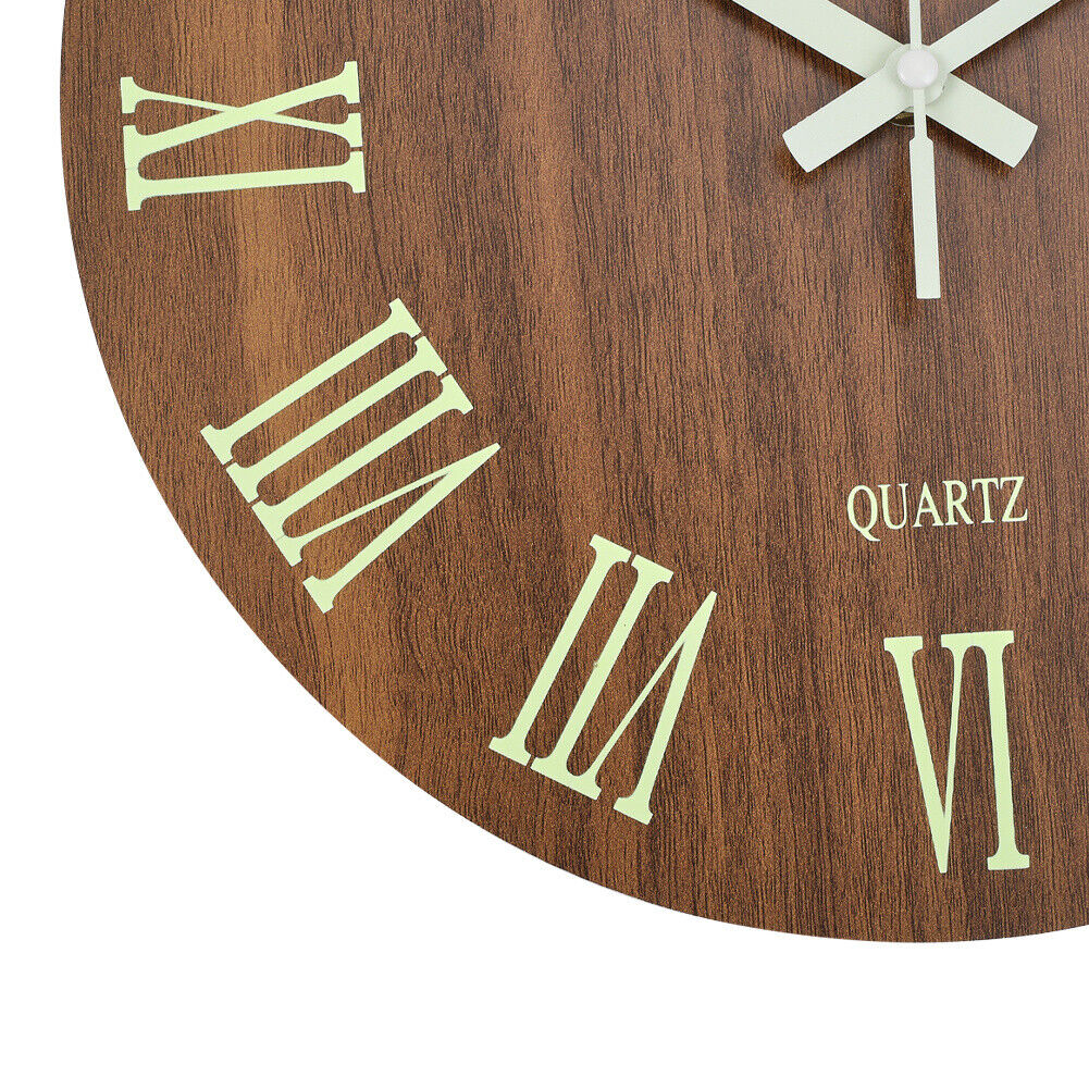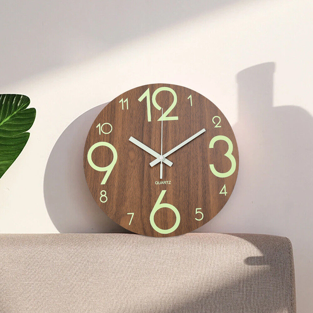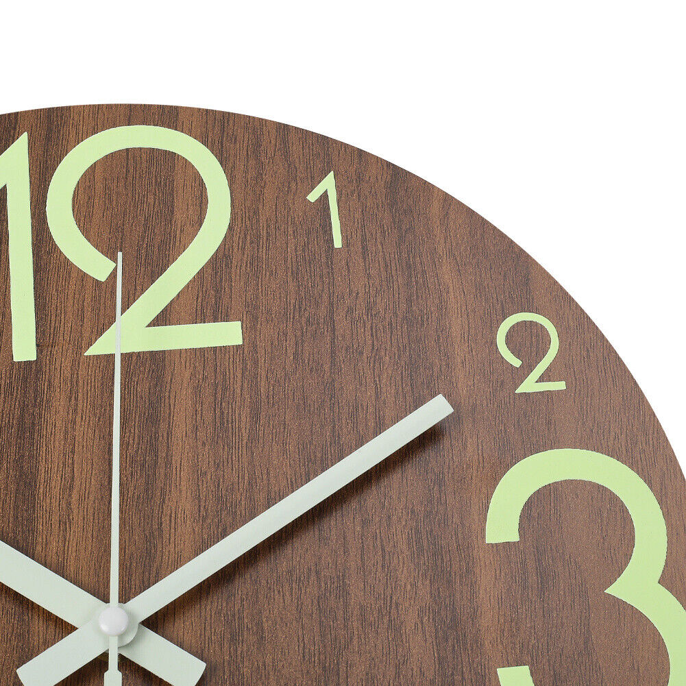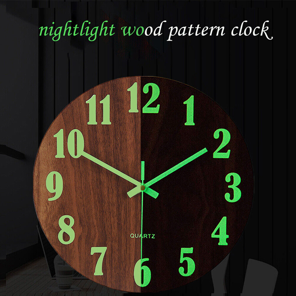 12" Luminous Wall Clock Silent Wooden Design Night Light for Living Room Bedroom