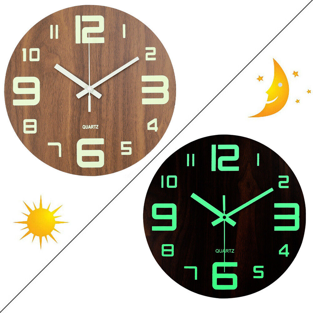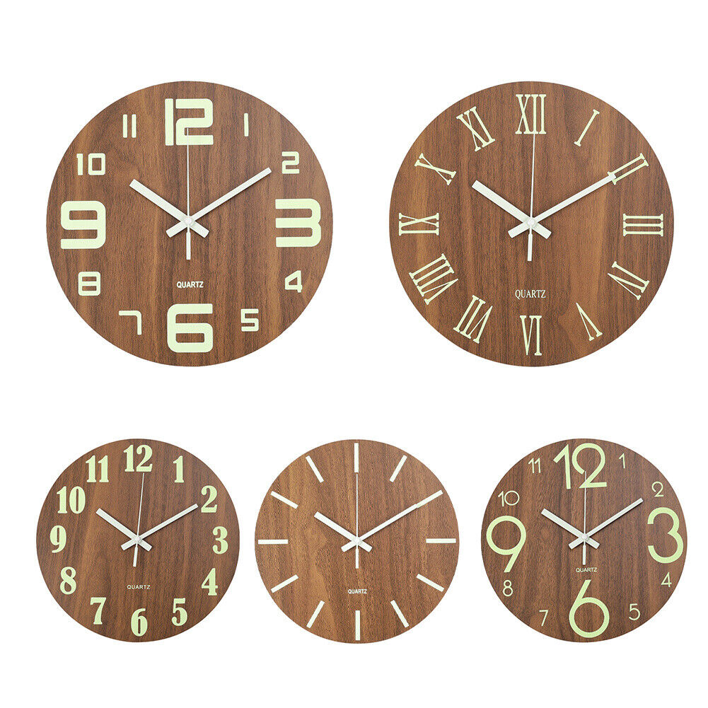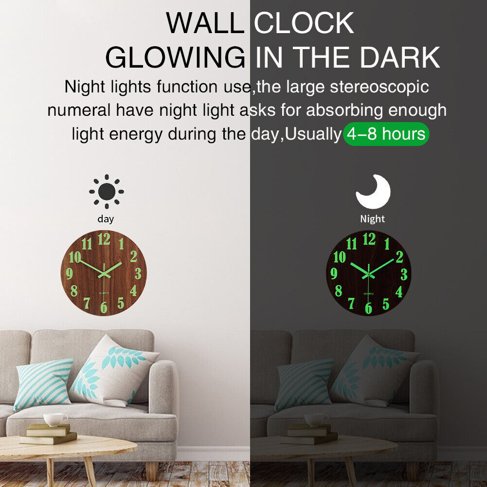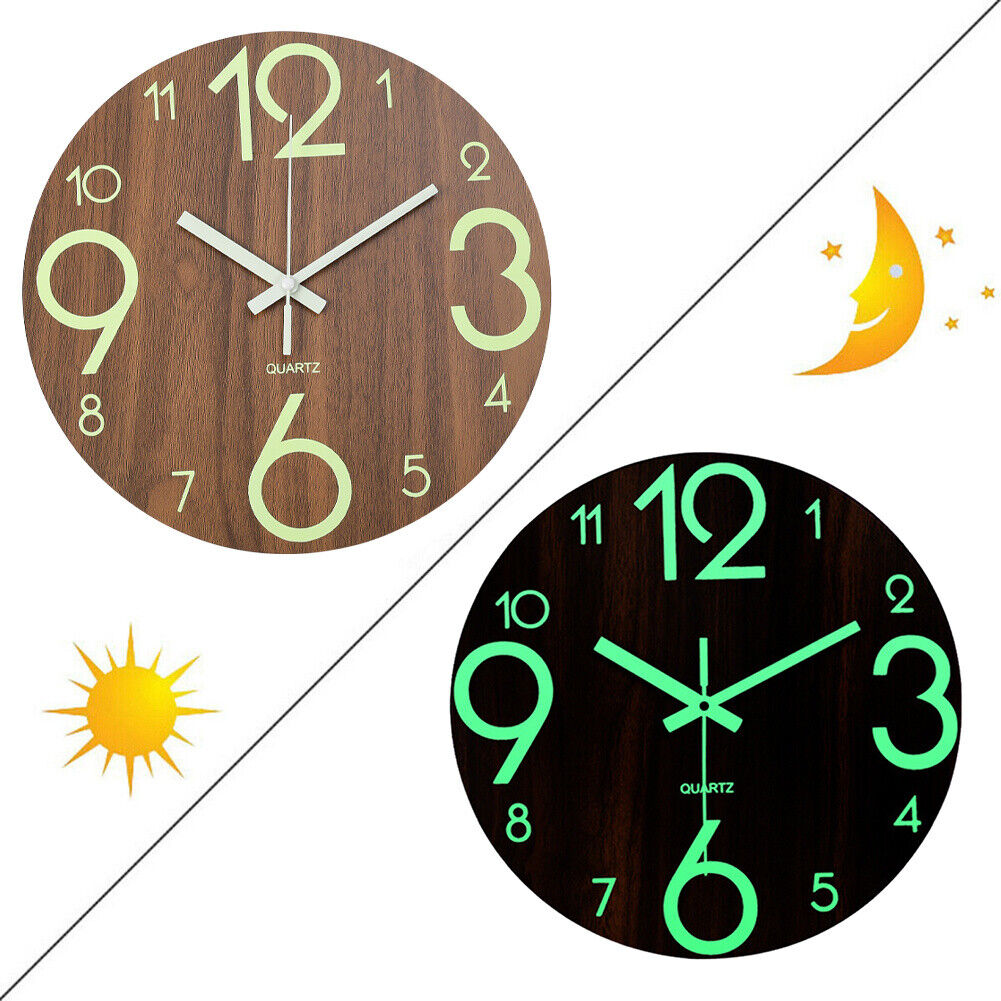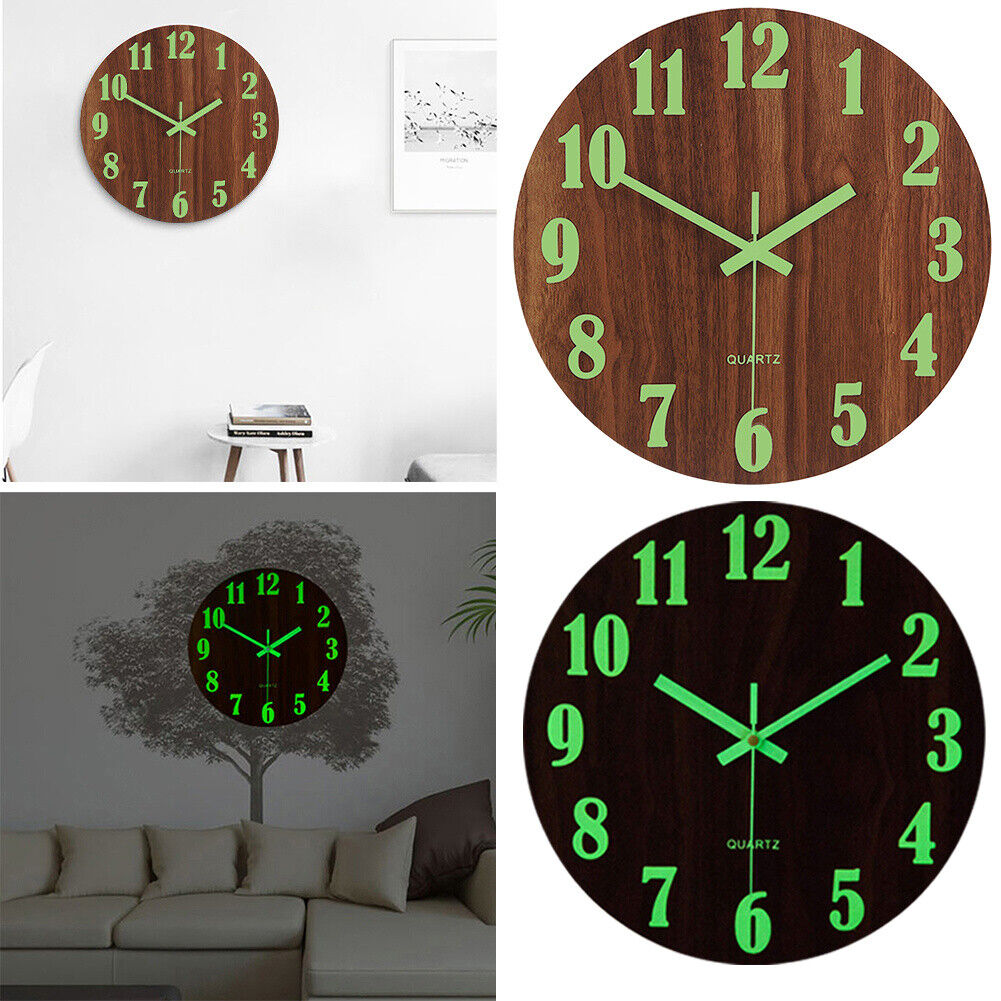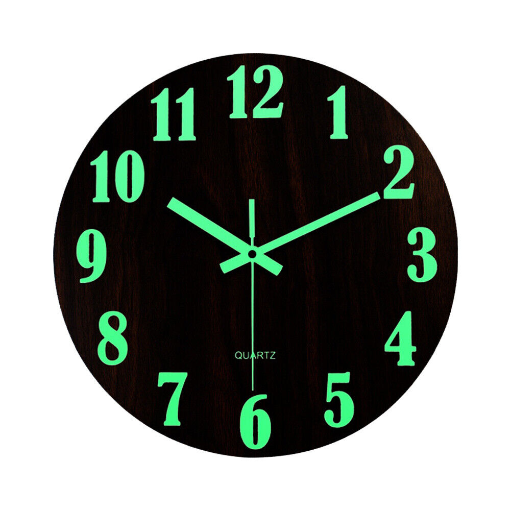 12" Luminous Wall Clock Silent Wooden Design Night Light for Living Room Bedroom