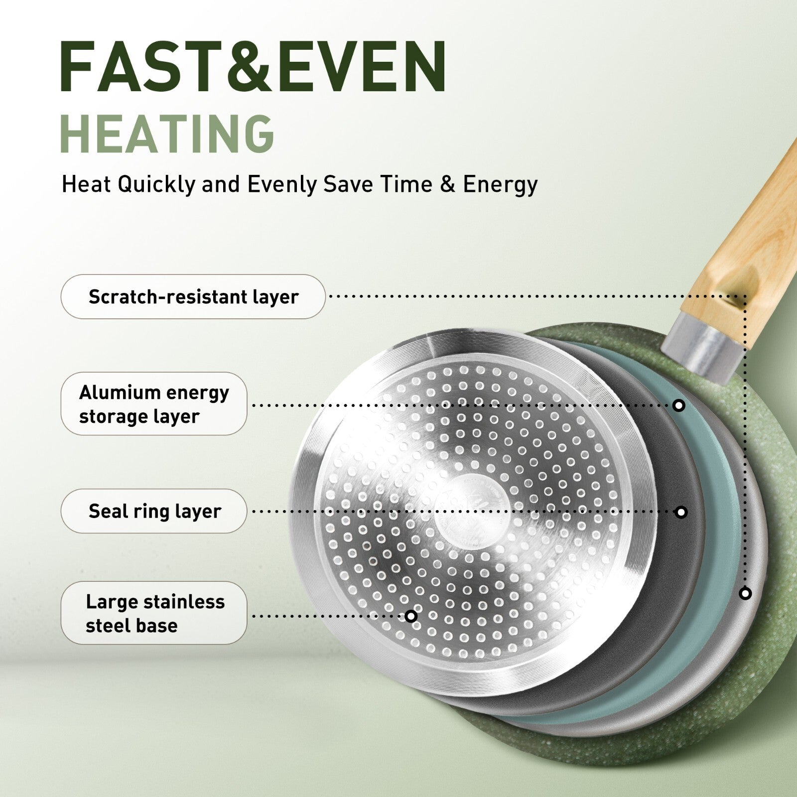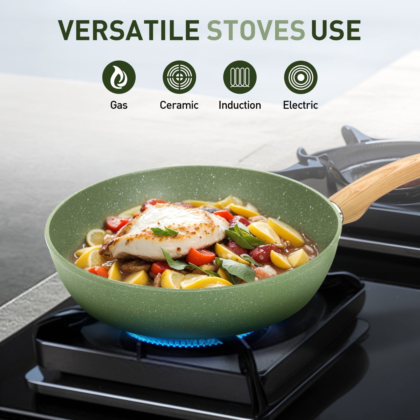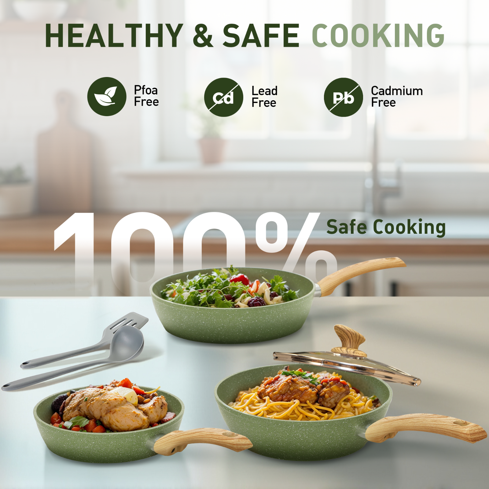 12 Pieces Nonstick Hammered Granite Green Kitchen Cookware Cooking Pots Pans Set