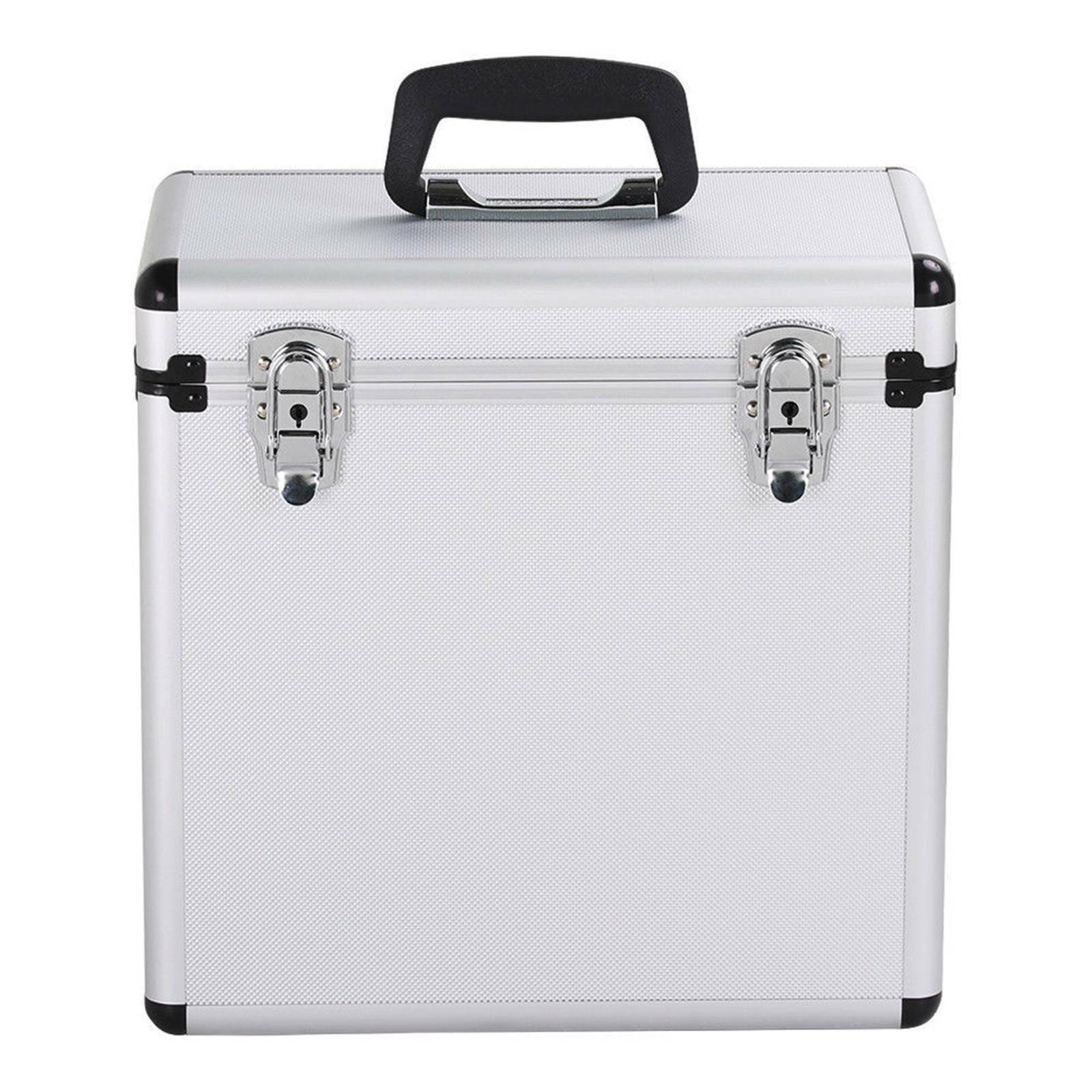 12" Vinyl Record Storage Box Case Flight DJ Stackable Case Silver Holds UK