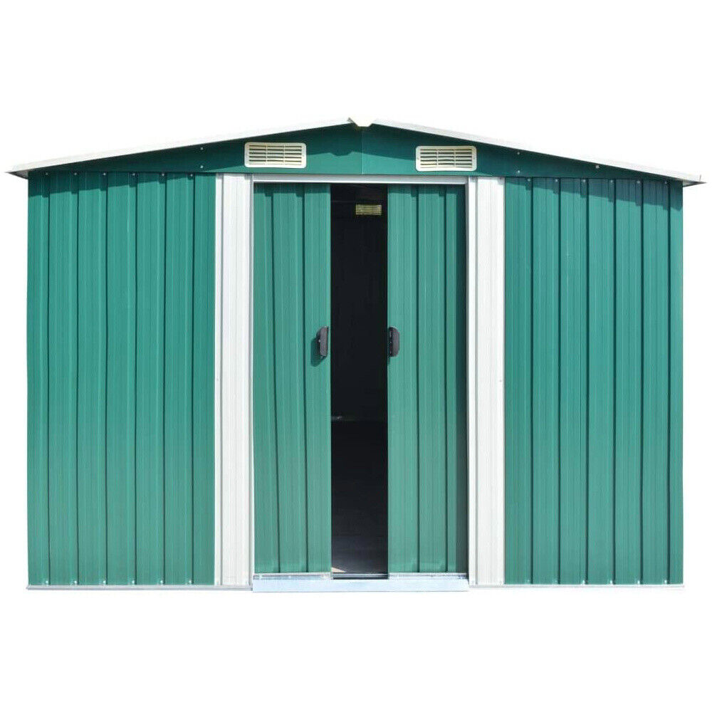 12 x 10ft Apex Metal Roof Garden Shed Storage House Outdoor Tool Box with Base