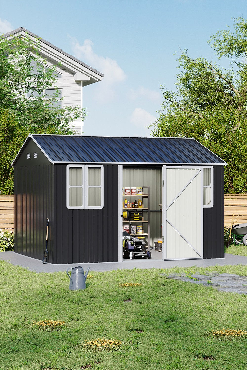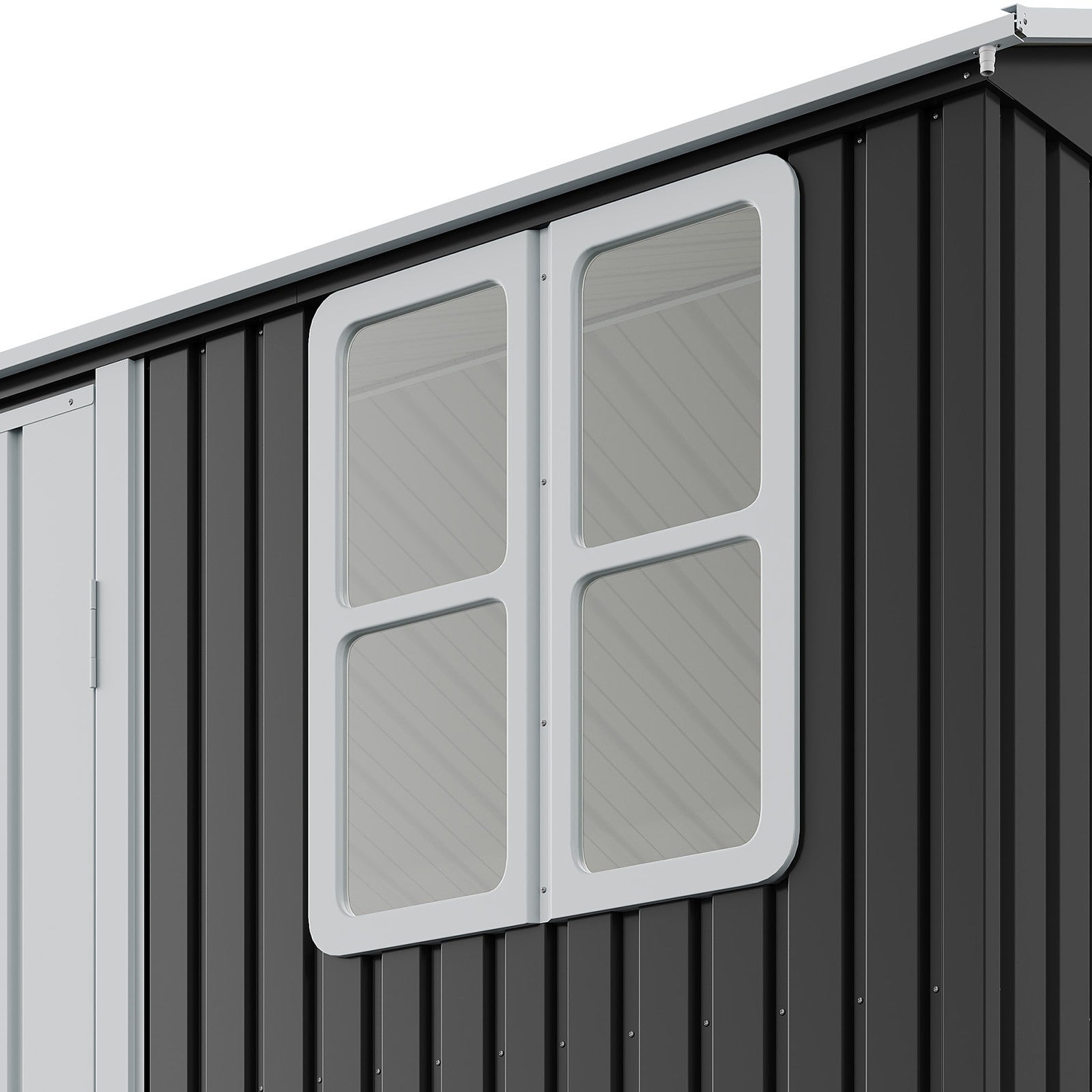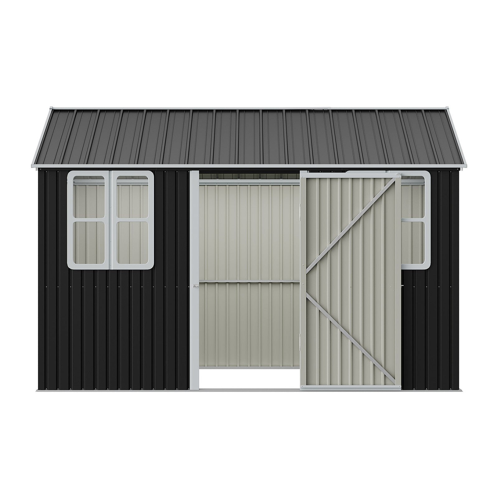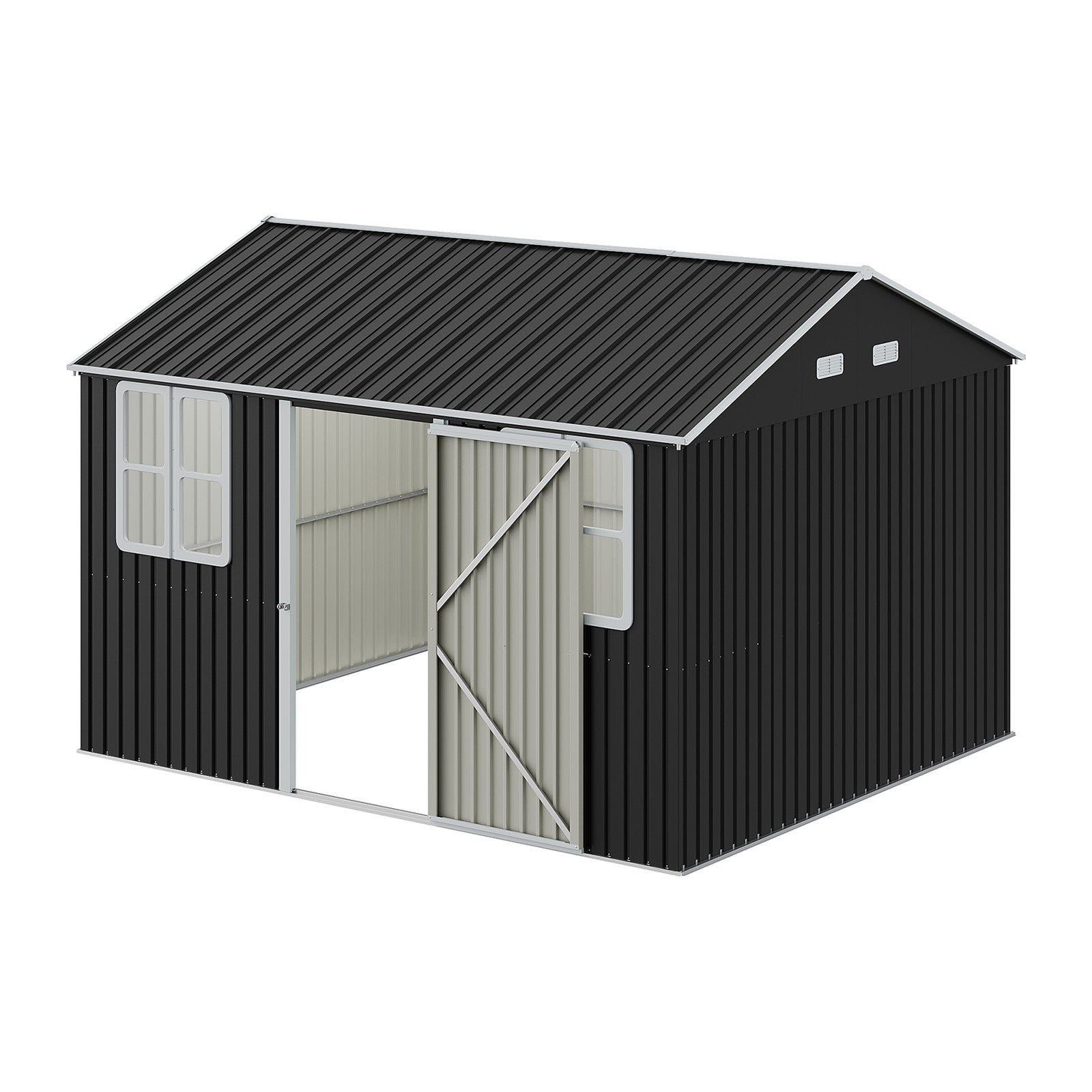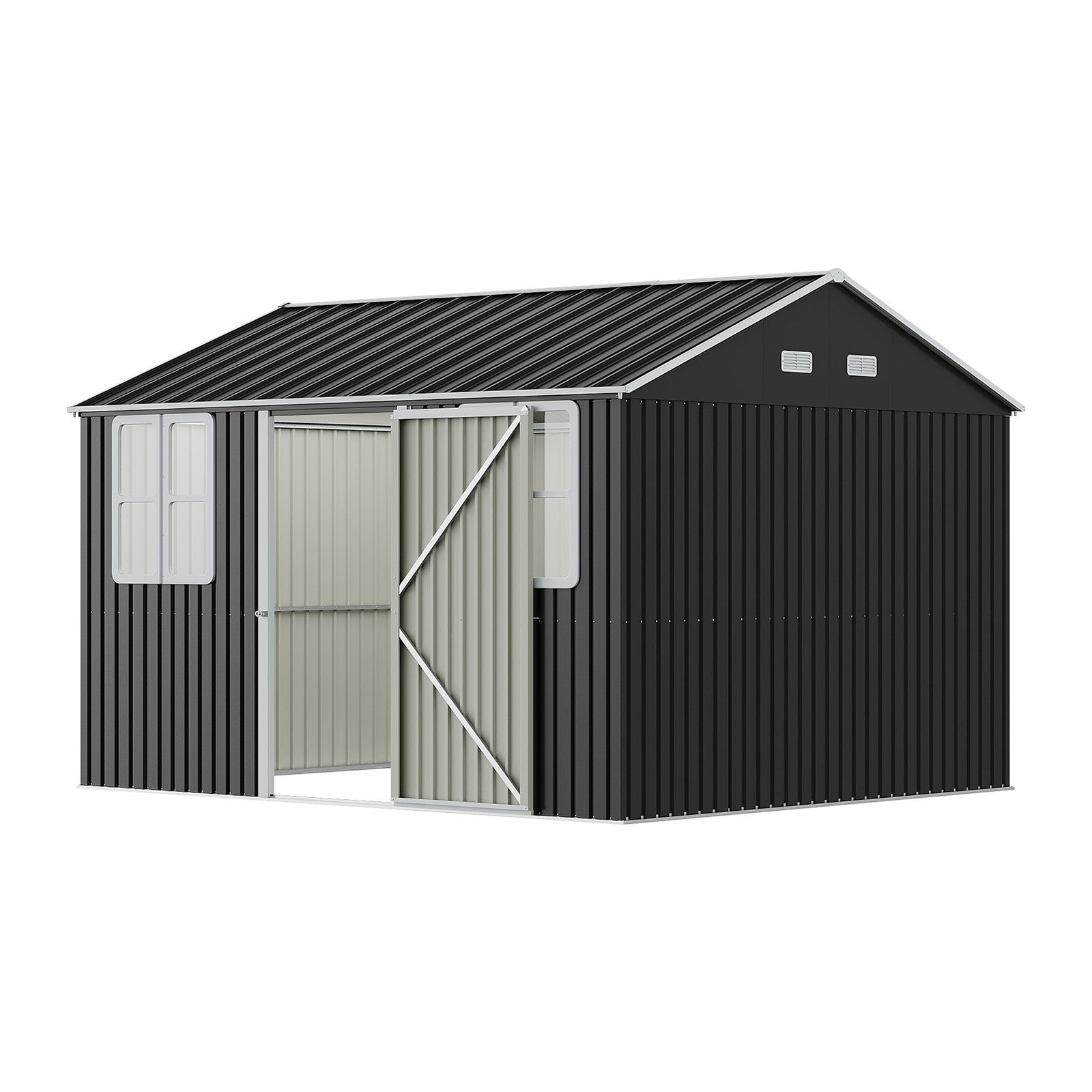 12 x 10FT Galvanised Garden Tool Storage Shed with Lockable Door, Double Windows
