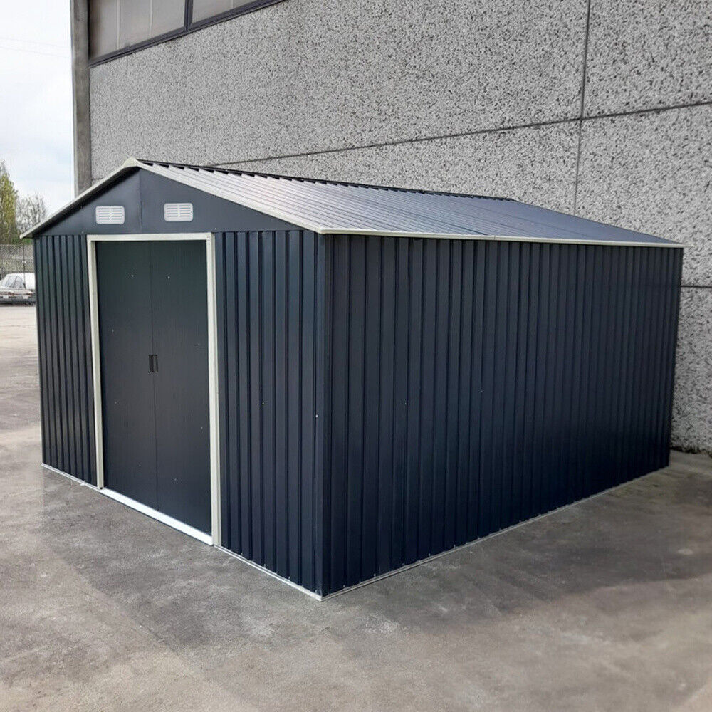 12 x 10ft Heavy Duty Metal Garden Shed Apex Roof Outdoor Tool Storage Box House