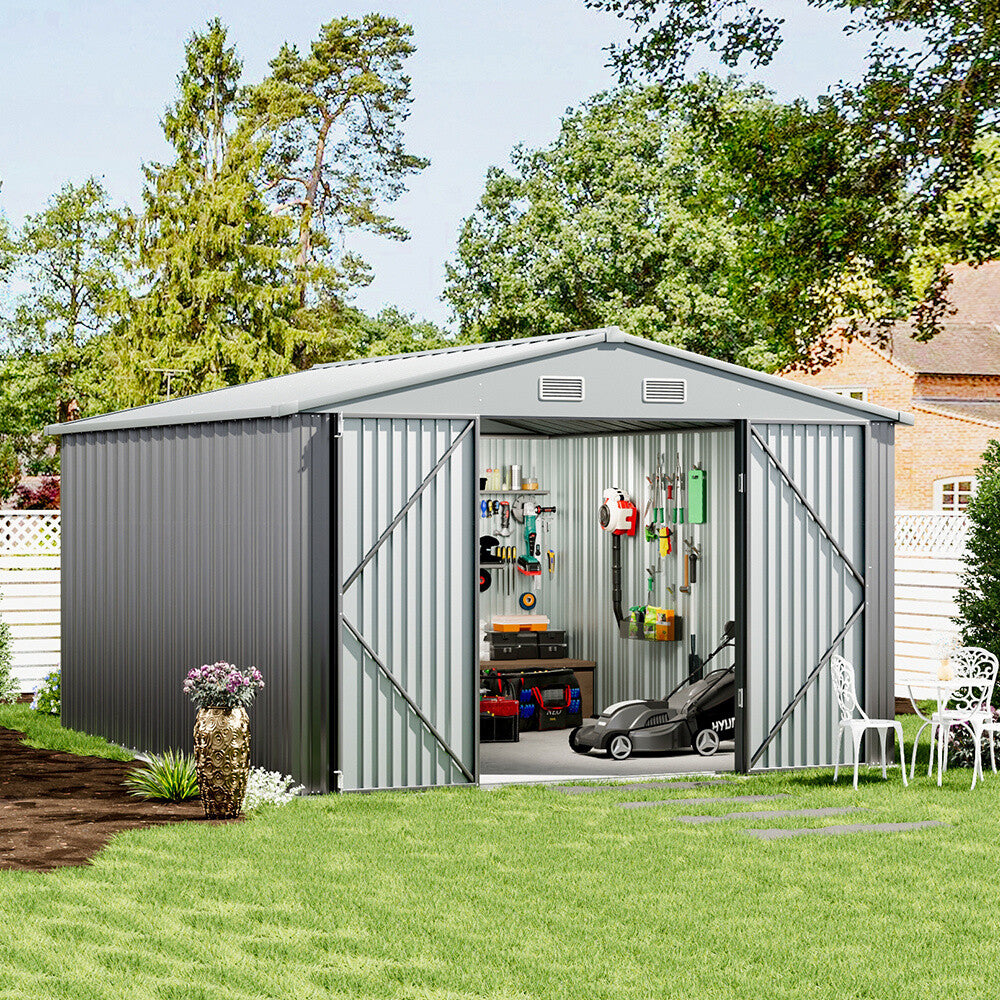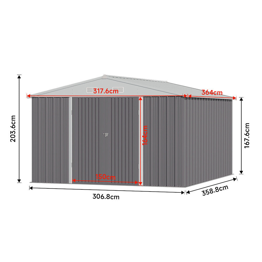 12 X 10ft Metal Garden Shed Storage Tool Sheds House Lockable Door & Ventilation