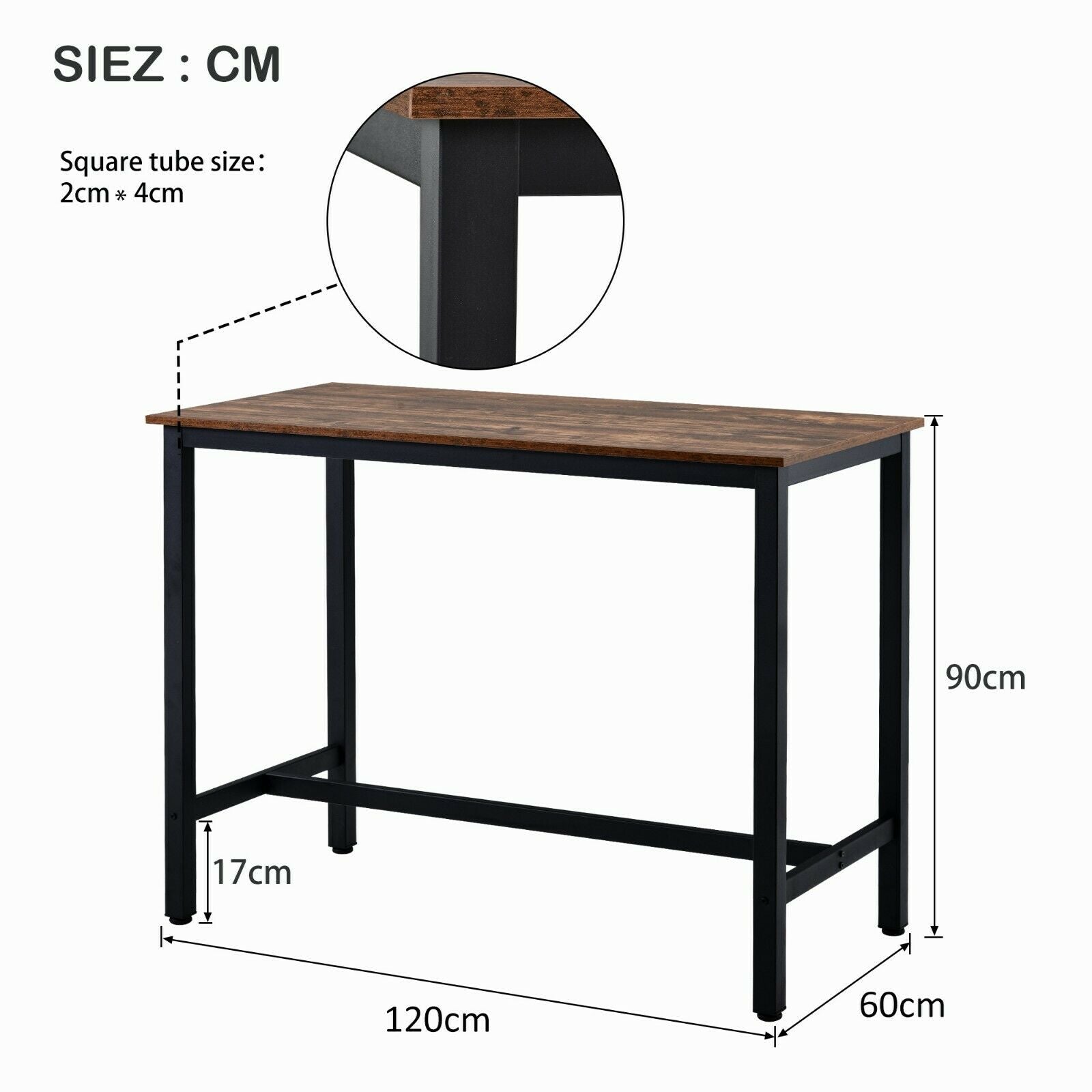 120*60*90cm Bar Table Industrial Table Dining Table With Metal Frame for Kitchen