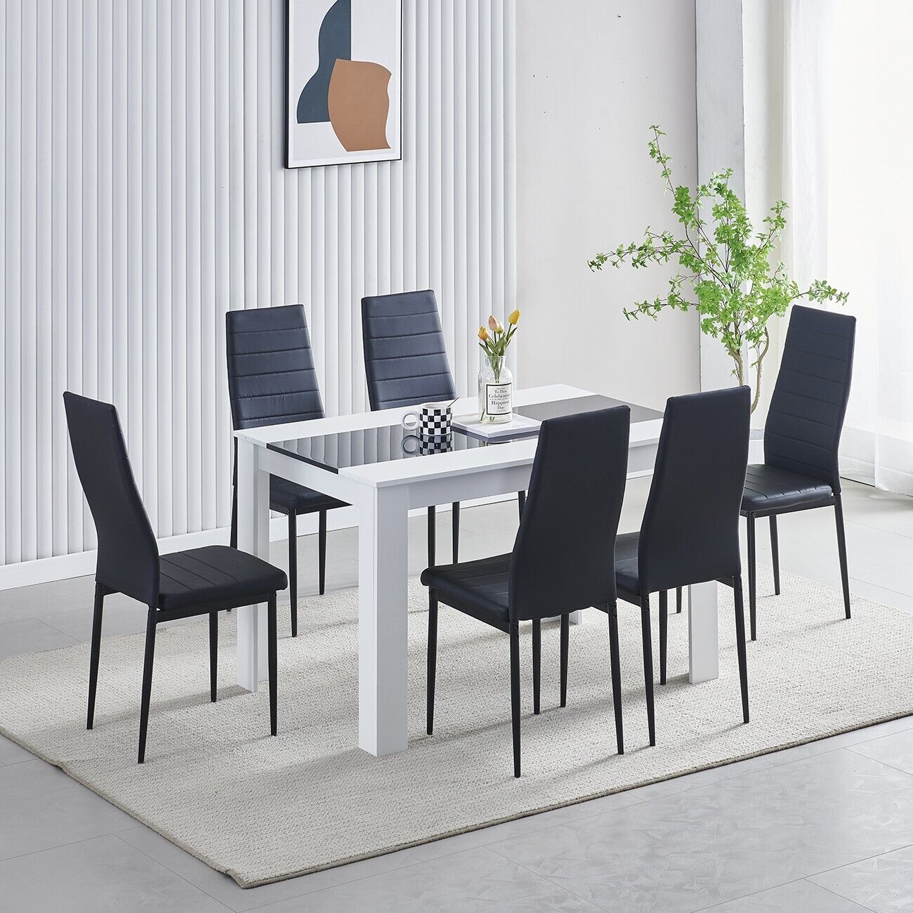 120×80cm White+Black Dining Table for 2-6 Wooden Kitchen Table Writing Table