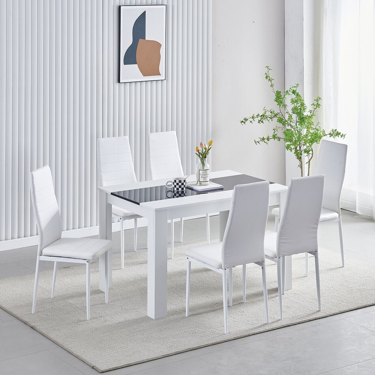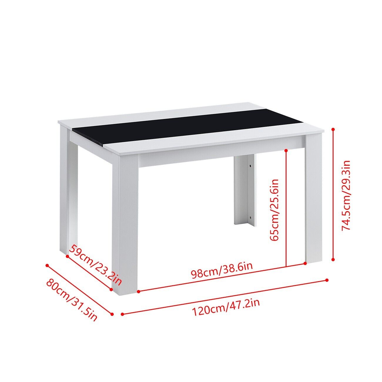 120×80cm White+Black Dining Table for 2-6 Wooden Kitchen Table Writing Table