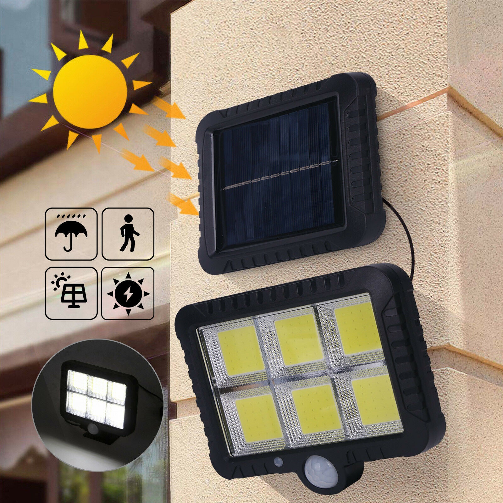 Features: Solar Sensor, Weather Proof/ Rainsafe